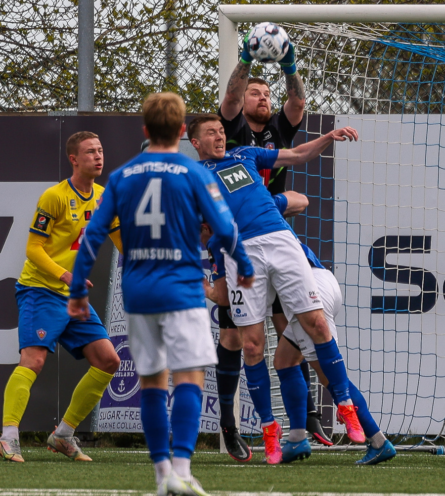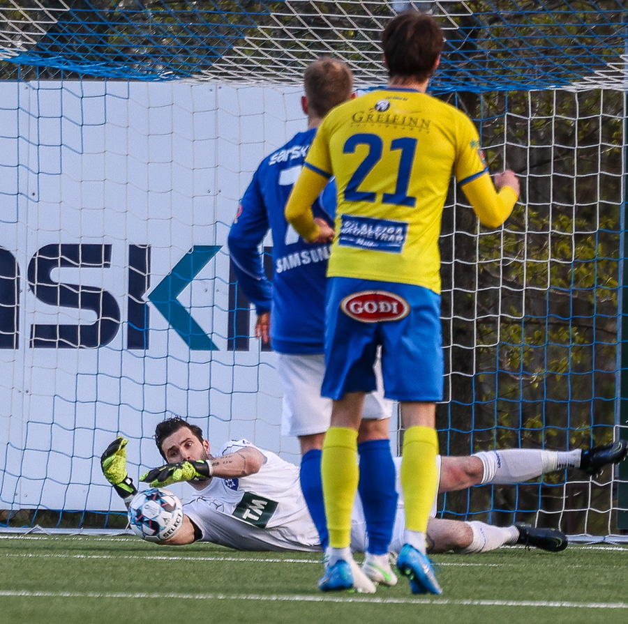 Þarna átti Stubbur geggjaða vörslu eftir skalla frá Þorsteini en það var hvort eð er búið að dæma brot í teignum. Geggjuð varsla engu að síður.