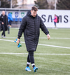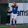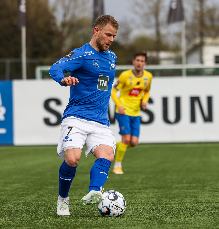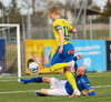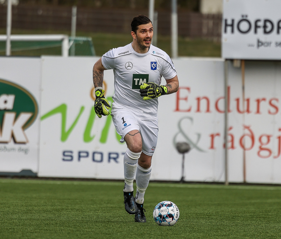 Tristan með gott skot utan af velli sem Stubbur þurfti að gera vel í að verja sem hann gerði.