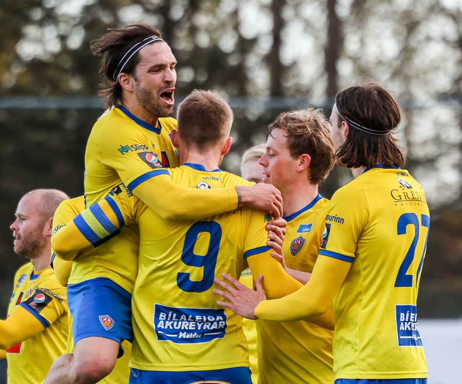 KA- menn eru búnir að skora 10 mörk og fá á sig 3. Hallgrímur Mar er svo markahæsti maður deildarinnar með 5 mörk.