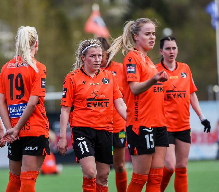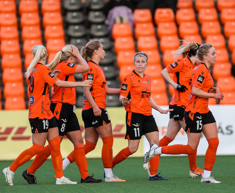 Heimakonur hefja leik hér í síðari hálfleik. Valgerður Ósk Valsdóttir kemur inná í liði Fylkis.