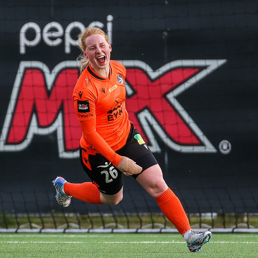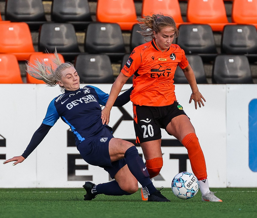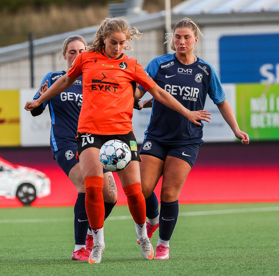 Shannon fer illa með Kristrúnu úti hægra meginn og setur boltann inn á teiginn við vítapunkt þar sem Hulda tekur varnarmann úr leik með frábærri fyrstu snertingu og skilar boltanum af öryggi í netið með góðu skoti