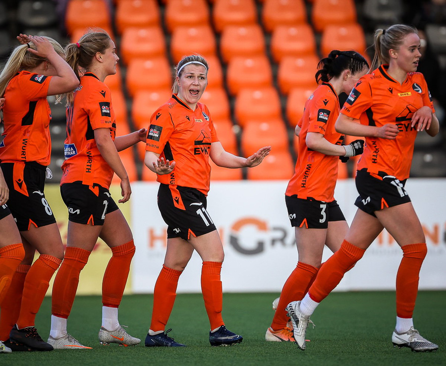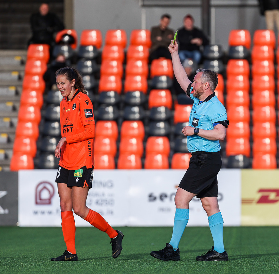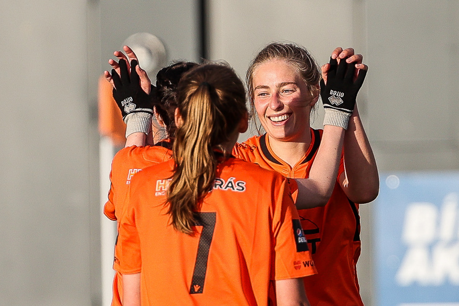 Eftir fremur bragðdaufan fyrri hálfleik leiða heimakonur eftir mark á loka andartökum hálfleiksins.