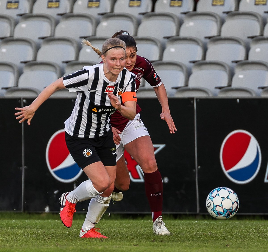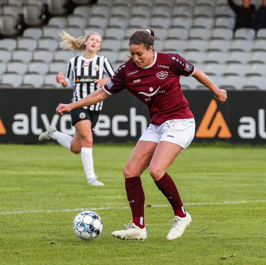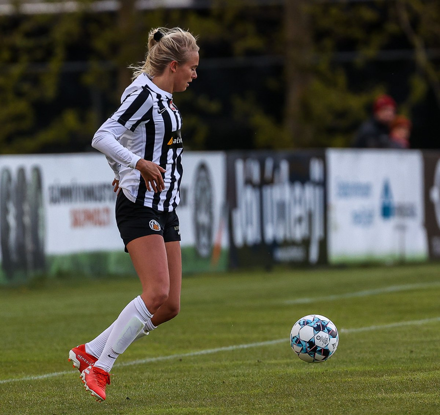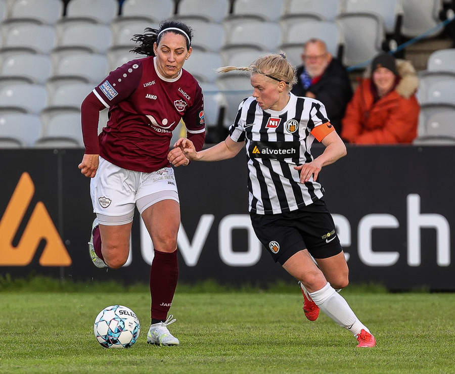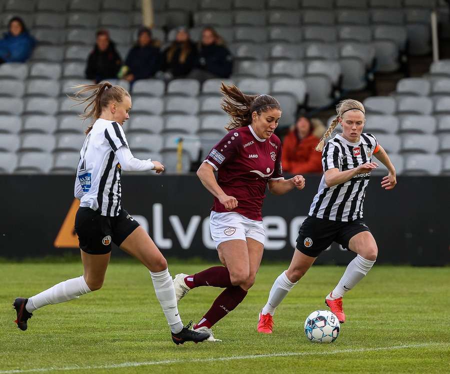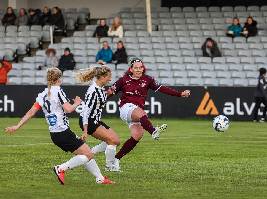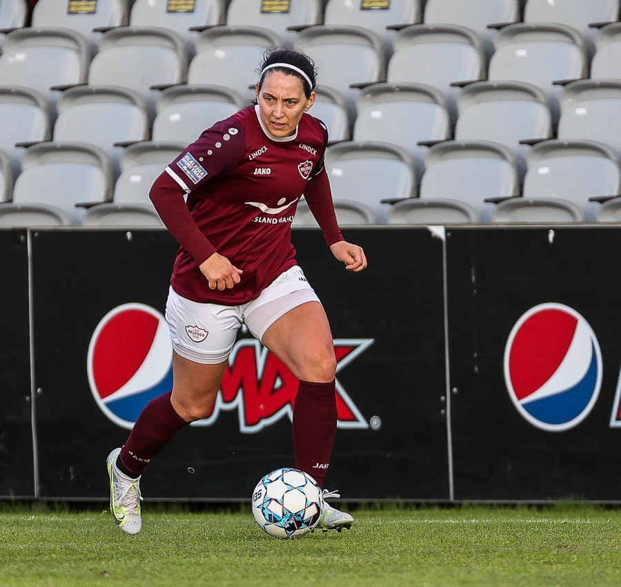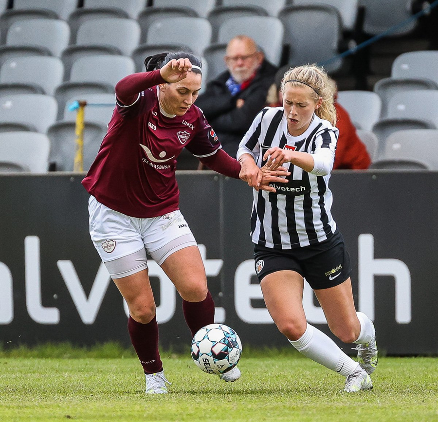 Frábær tilþrif hjá Caity á hægri kantinn og flottur bolti inn á Barbáru sem hittir ekki á rammann