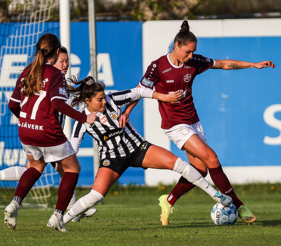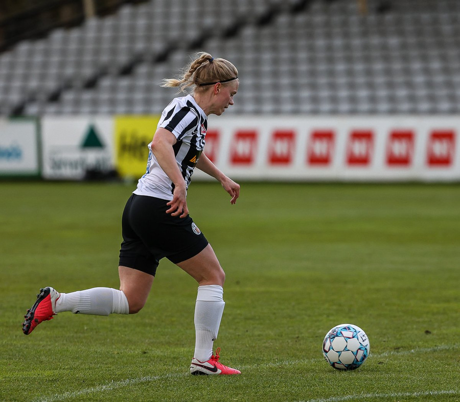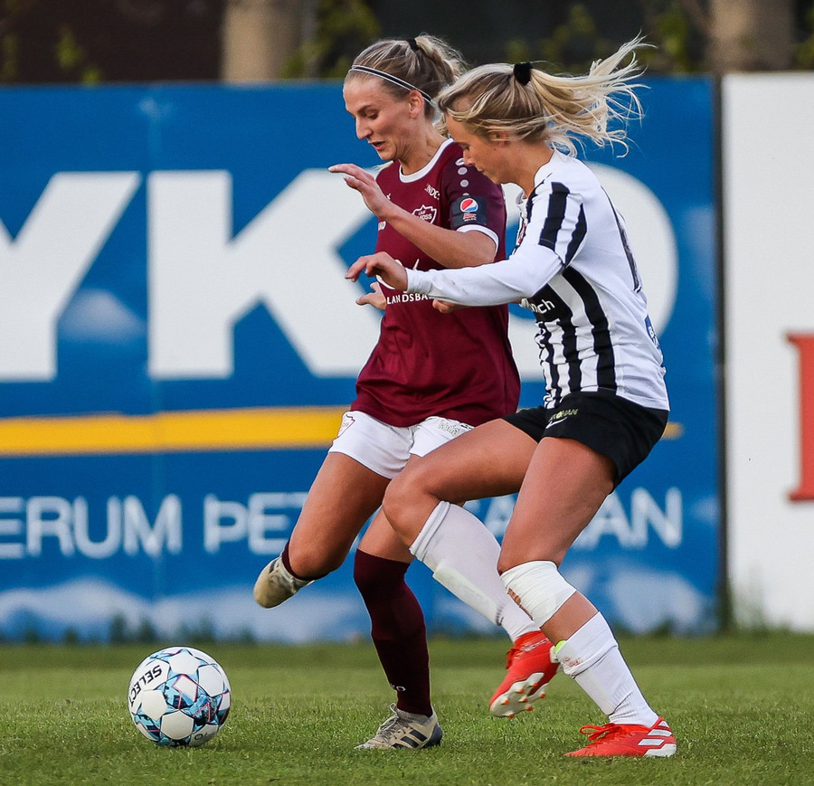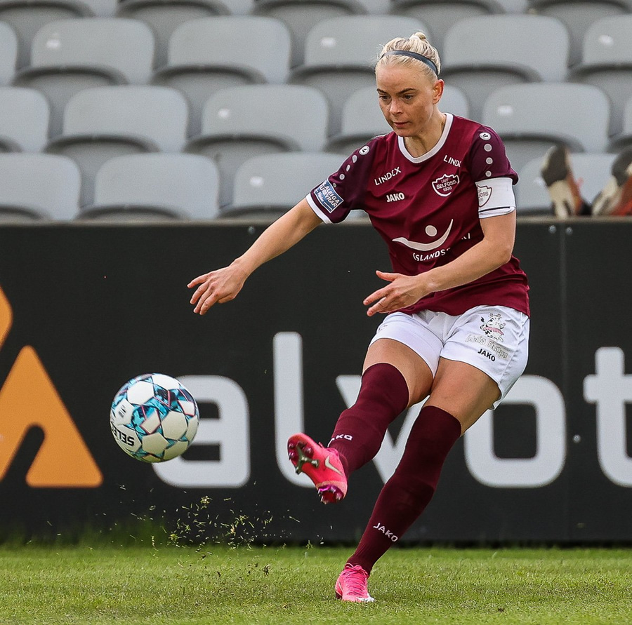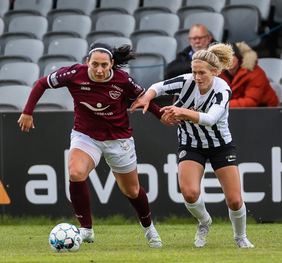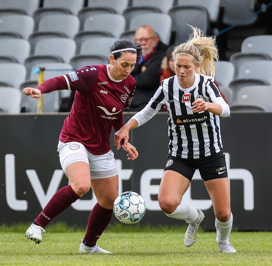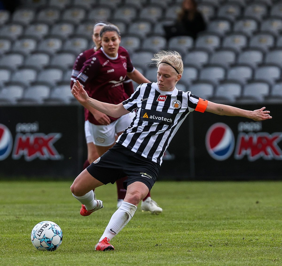 Frábær tilþrif hjá Caity á hægri kantinn og flottur bolti inn á Barbáru sem hittir ekki á rammann