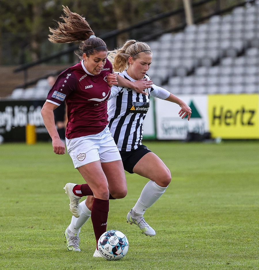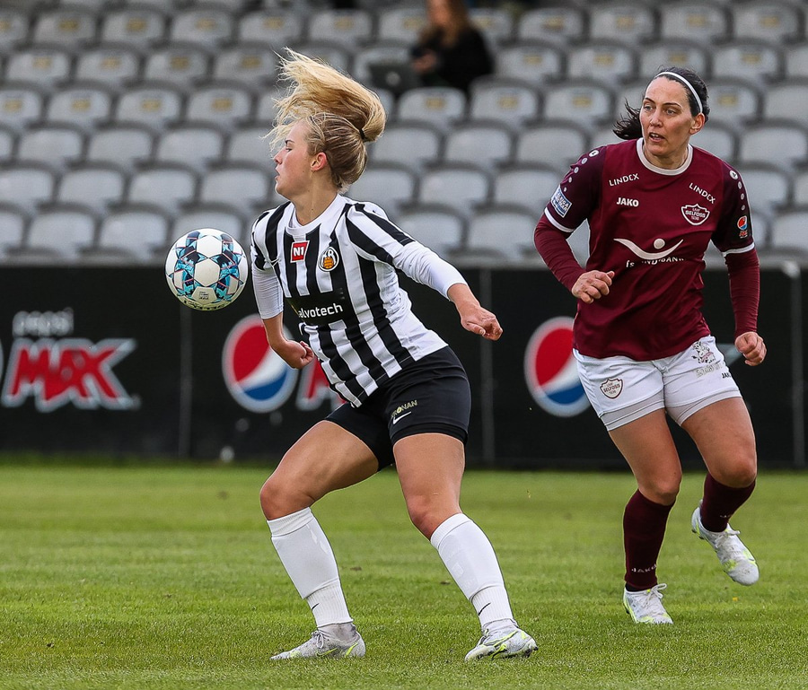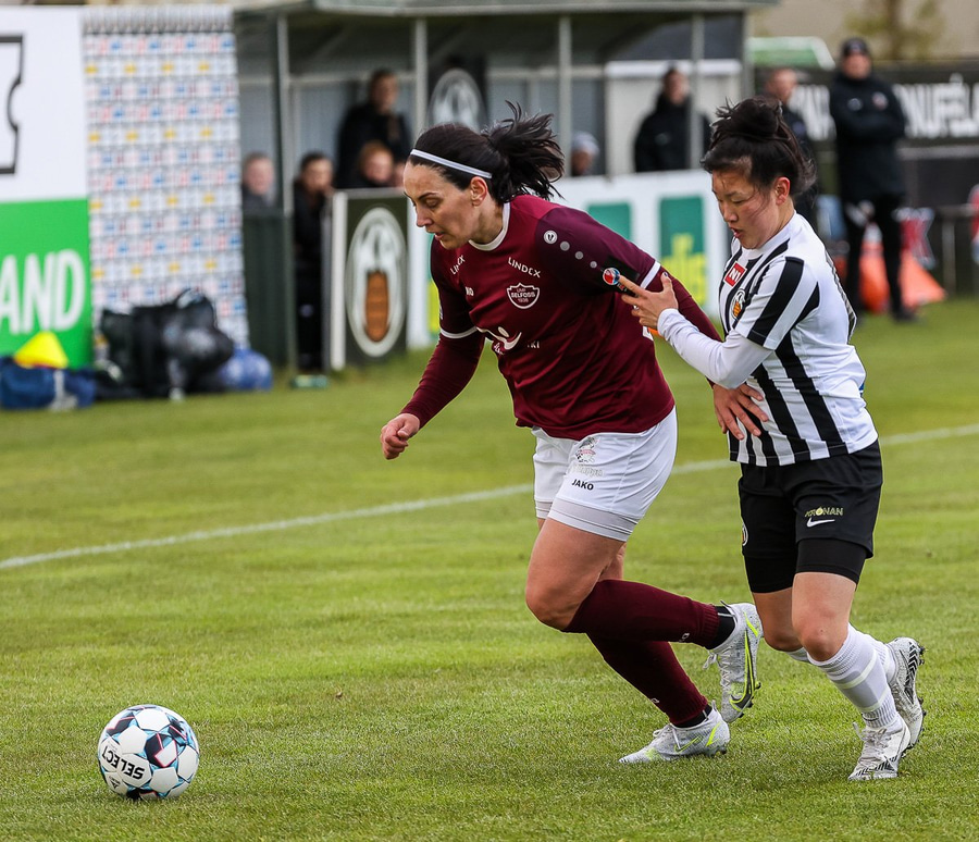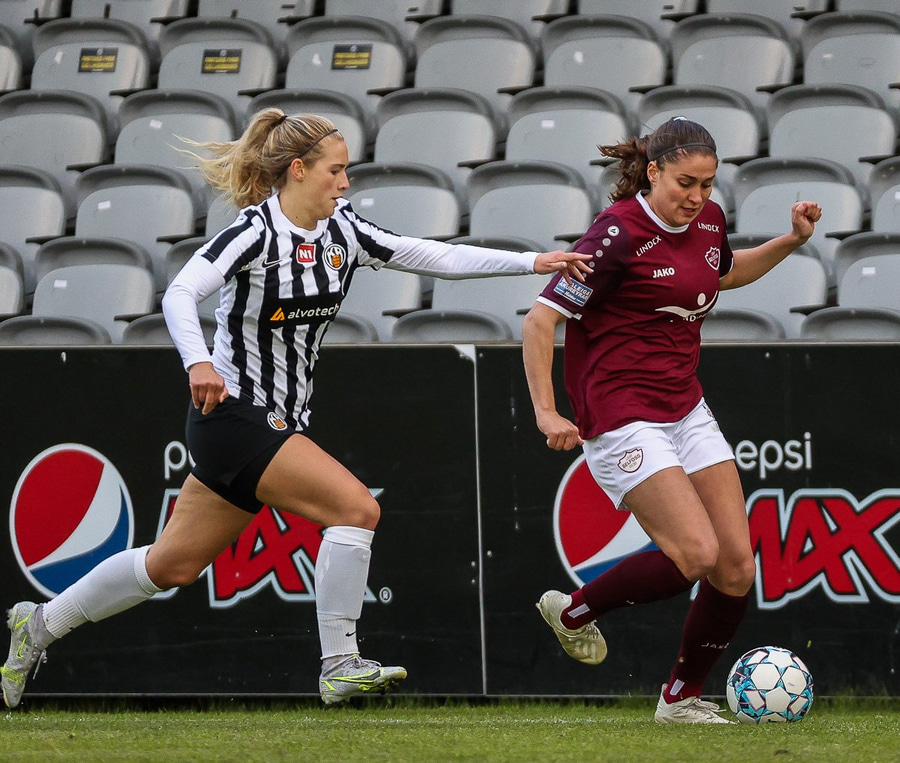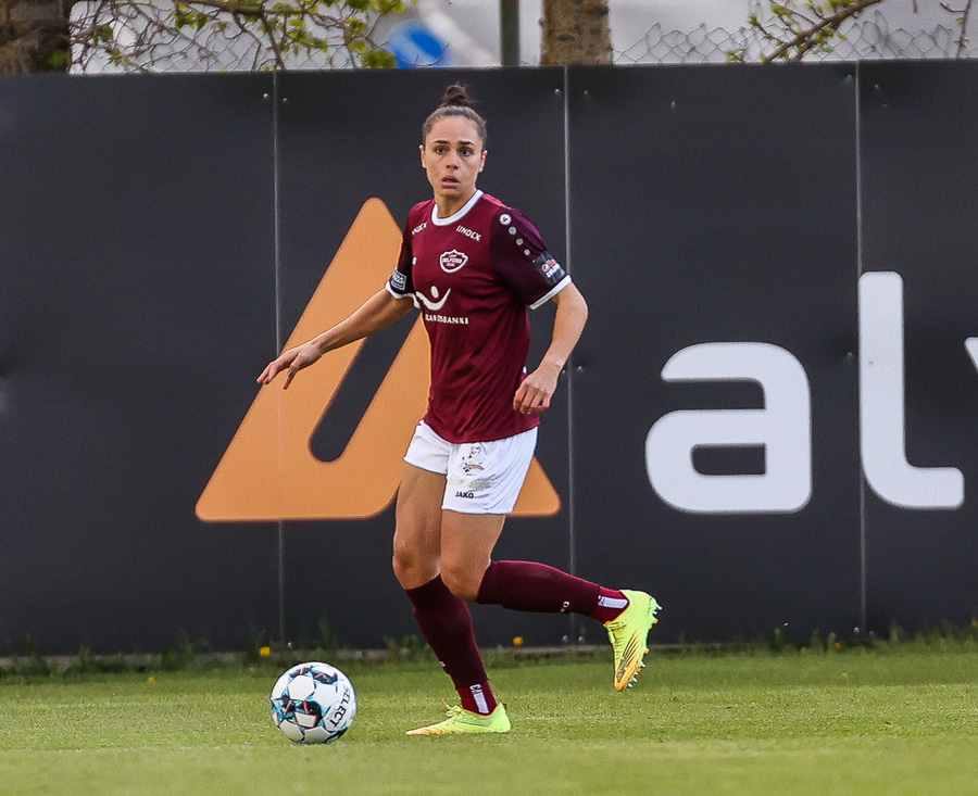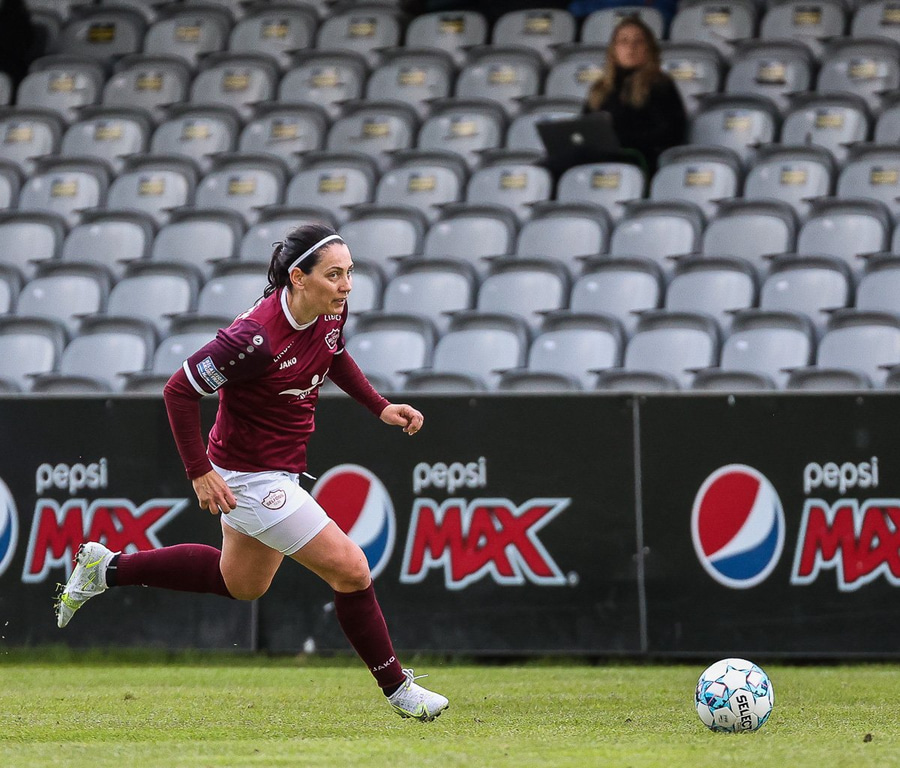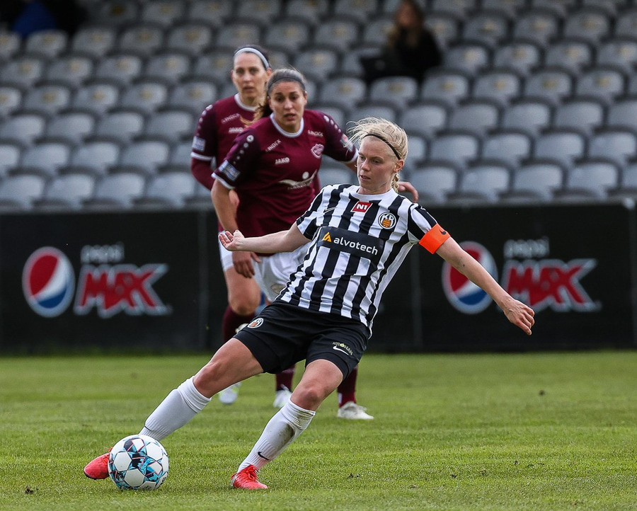 Frábær tilþrif hjá Caity á hægri kantinn og flottur bolti inn á Barbáru sem hittir ekki á rammann