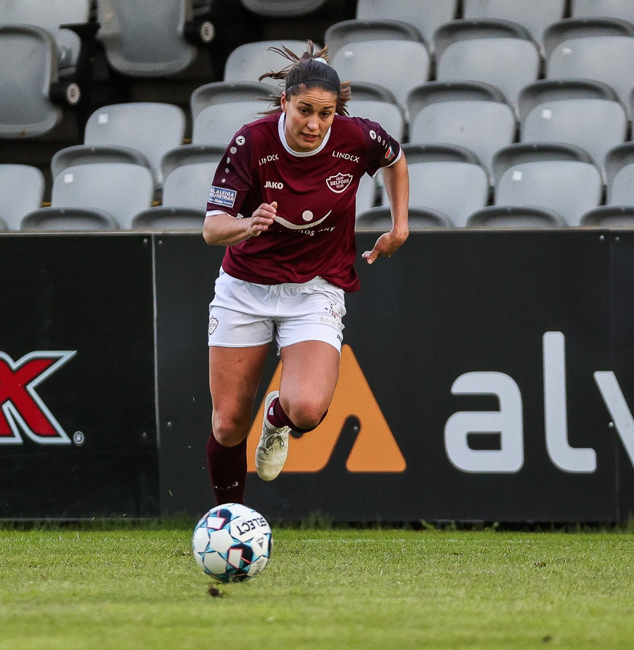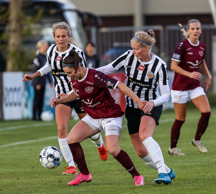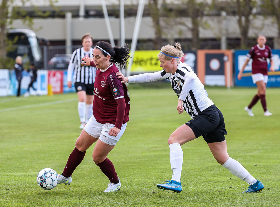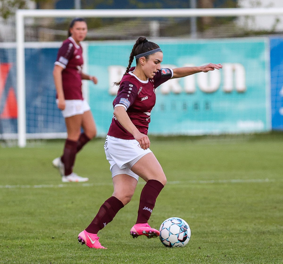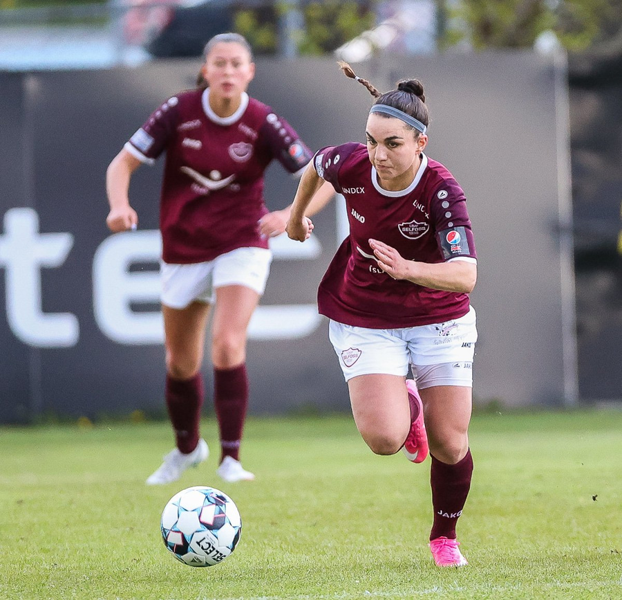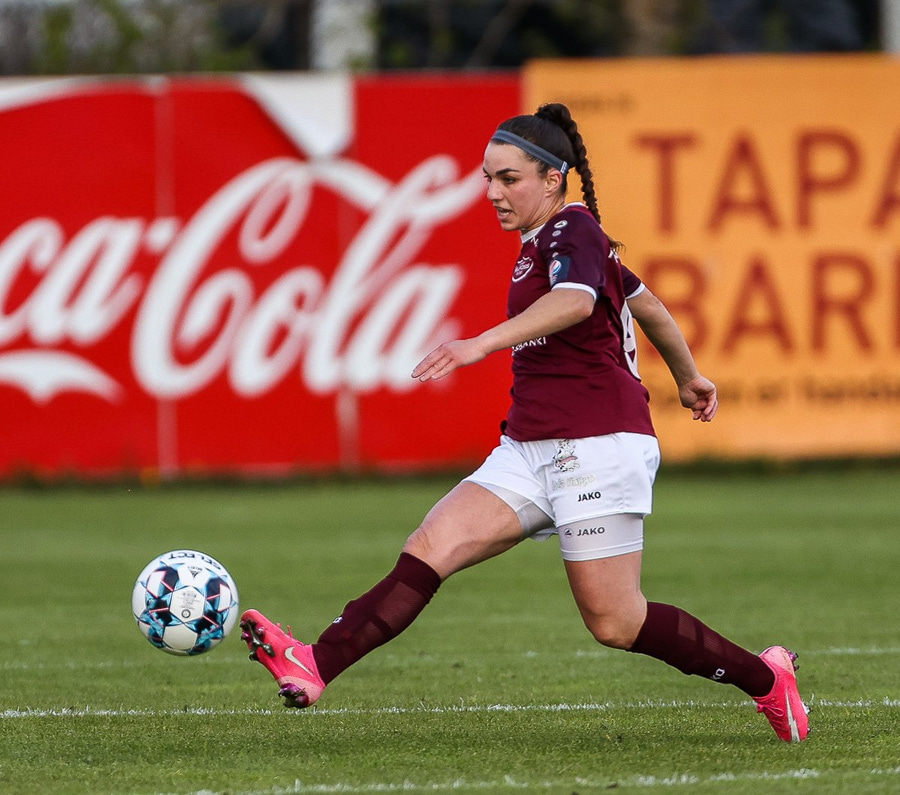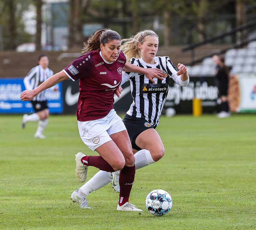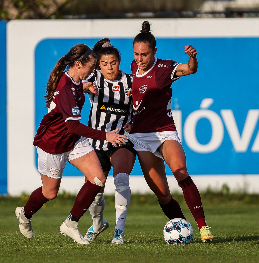 Frábær tilþrif hjá Caity á hægri kantinn og flottur bolti inn á Barbáru sem hittir ekki á rammann