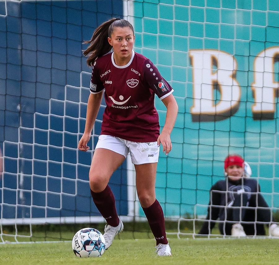 Stendur alein vinstra megin í teignum og fær sendingu frá hægri en lætur verja frá sér. Selfoss fær horn, það kemur ekkert úr því.