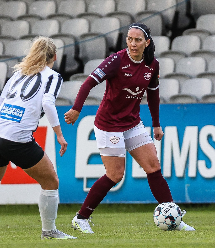 Frábær sókn hjá Selfyssingum - Barbára fær boltann út til hægri og keyrir upp kantinn og inn í teig og tekur skotið en lætur verja frá sér