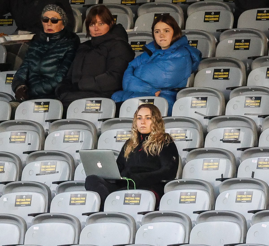 Tíu mínútur í að leikurinn hefjist. Það er nóg af lausum sætum - allir að drífa sig á völlinn!
