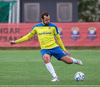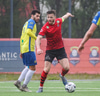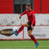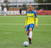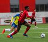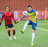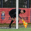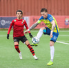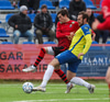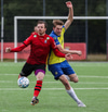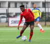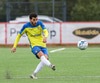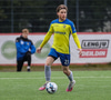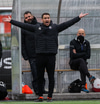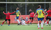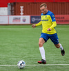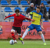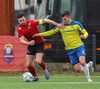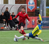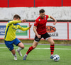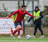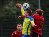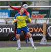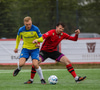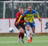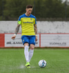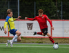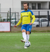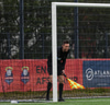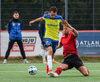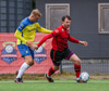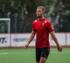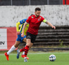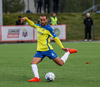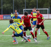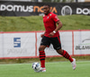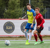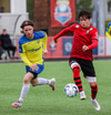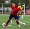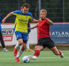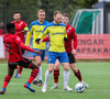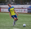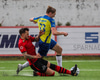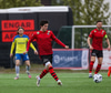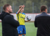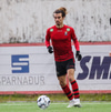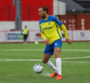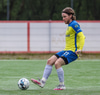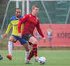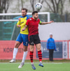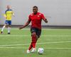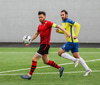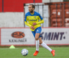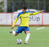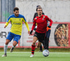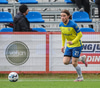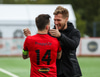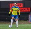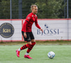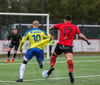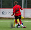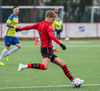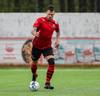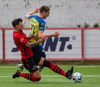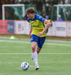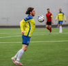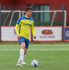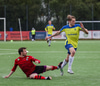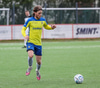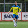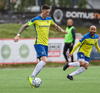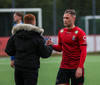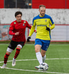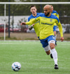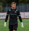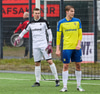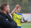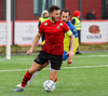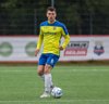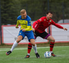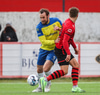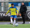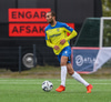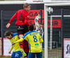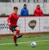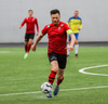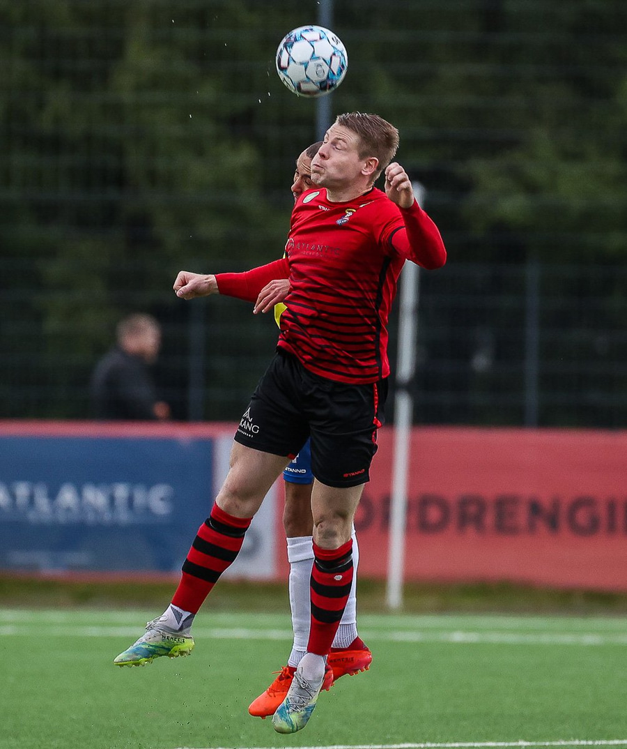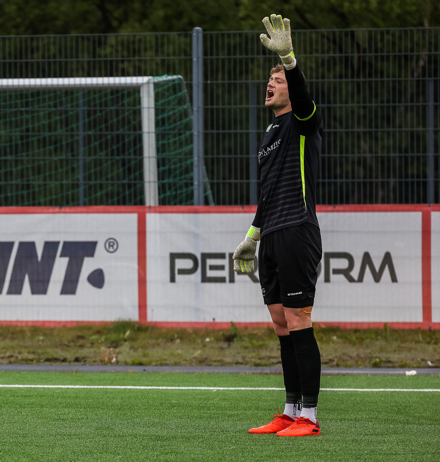 Albert Brynjar fær flugbraut og tekur skot við vítateigsendann en máttlítið og Aron ver auðveldlega.