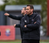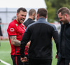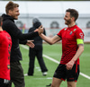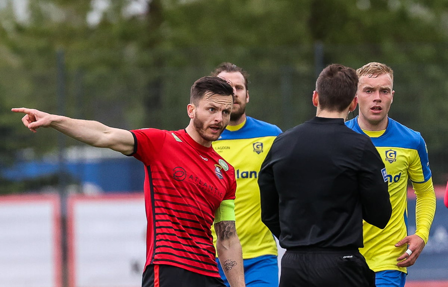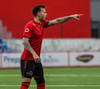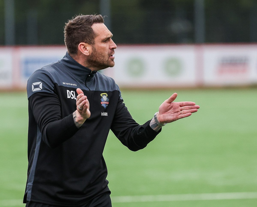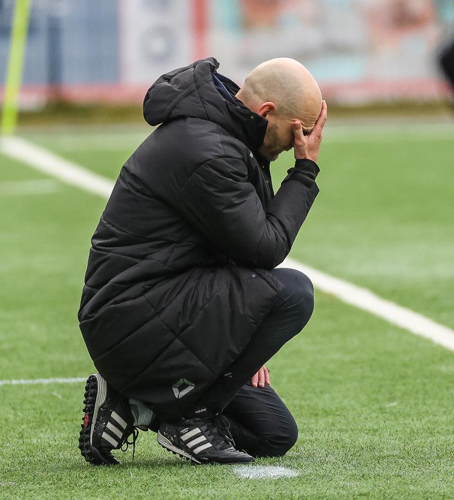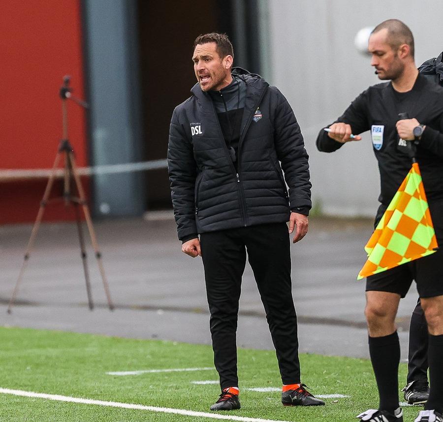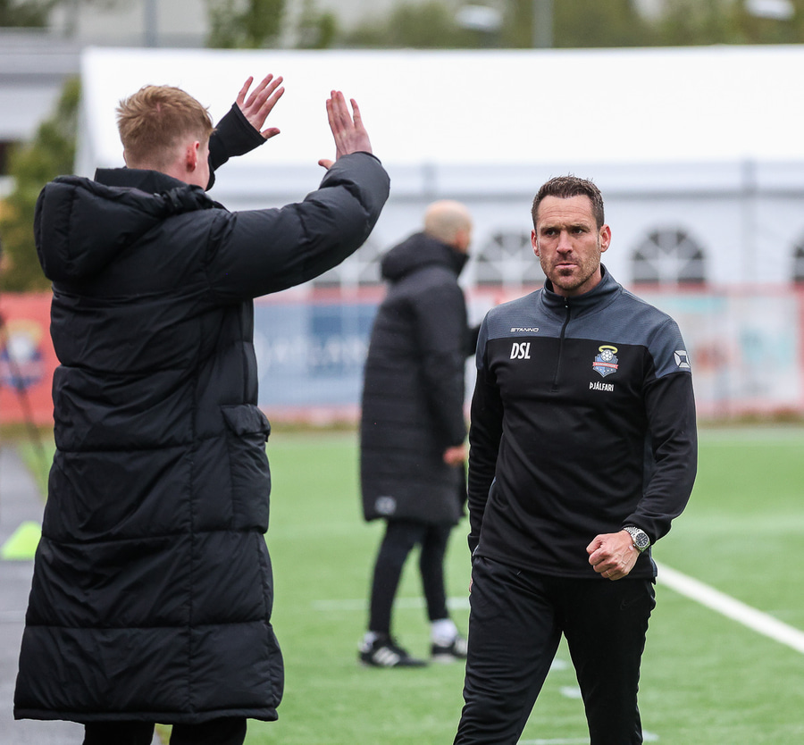 Davíð Smári lætur vel í sér heyra. Vill fá dæmda vítaspyrnu í kjölfarið á hornspyrnu. Heimtar hendi.