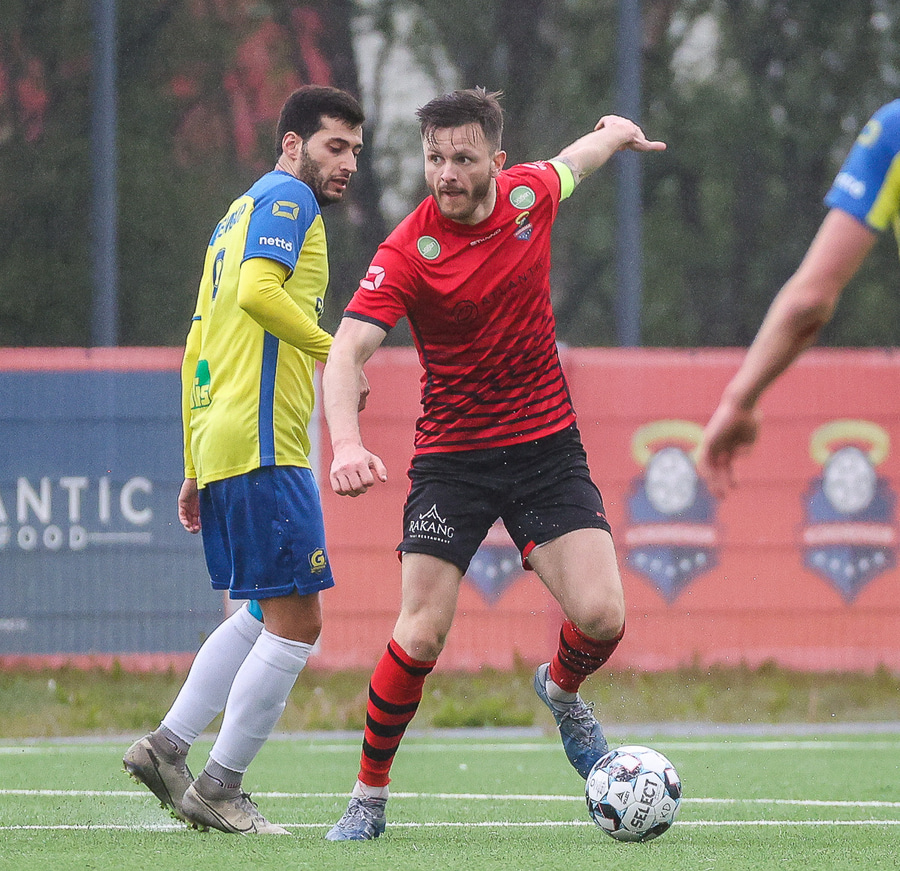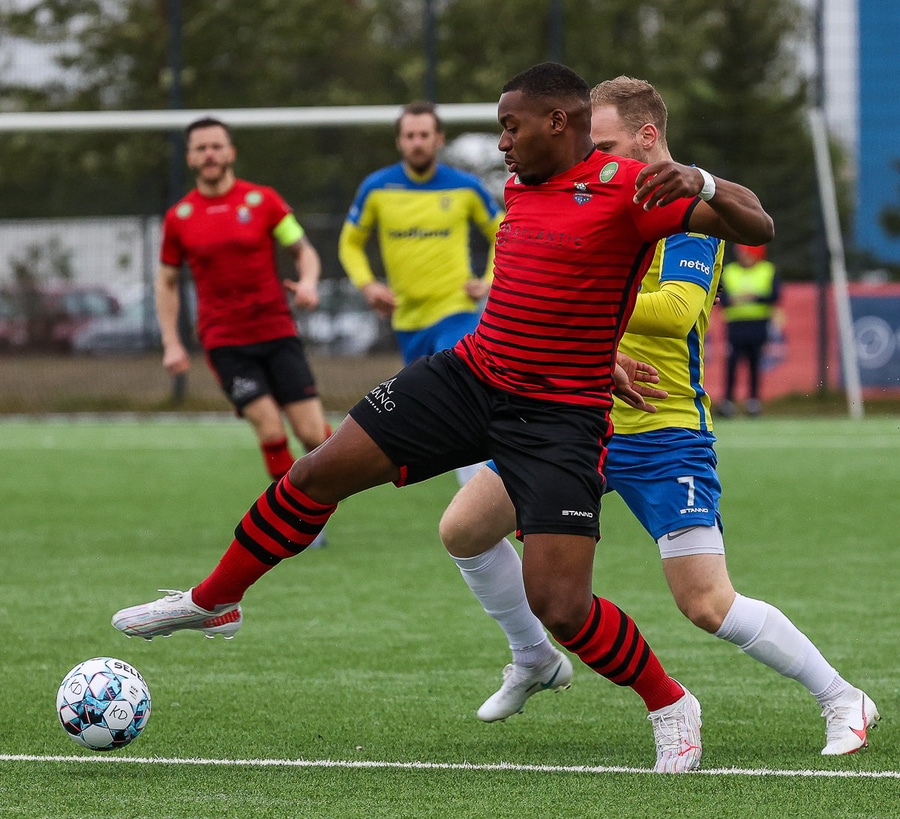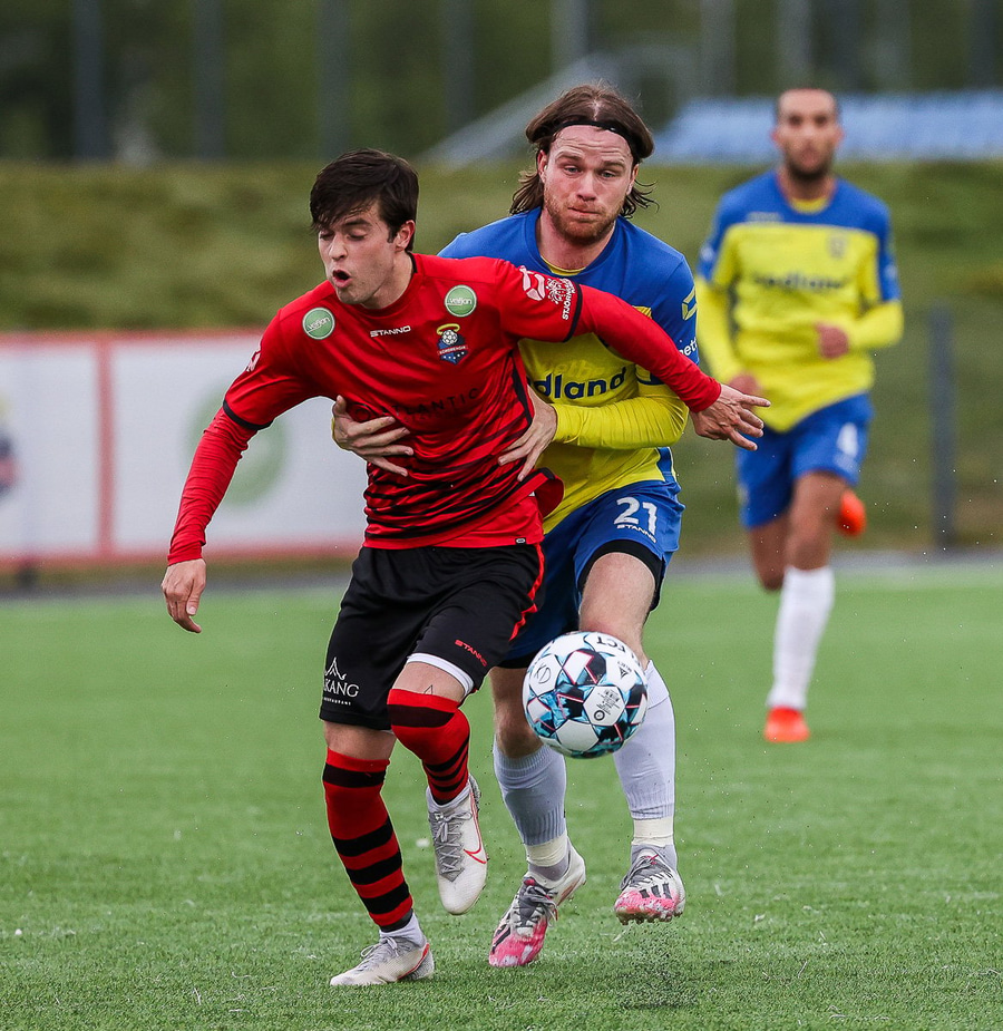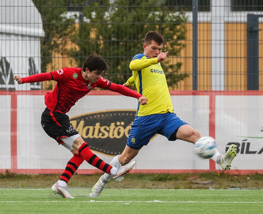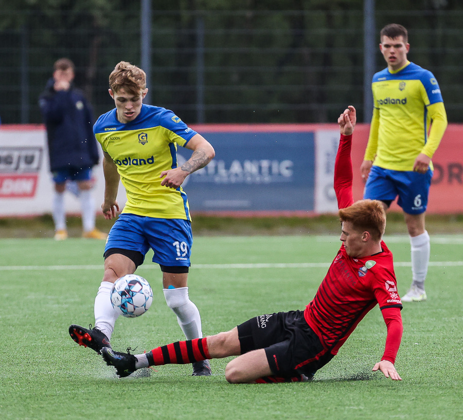 Leonard komst í gott færi í teignum og átti fast skot sem Aron varði. Davíð nálægt því að hirða frákastið í dauðafæri. Þarna skall hurðin.