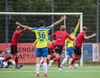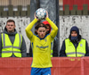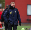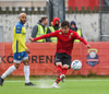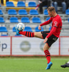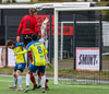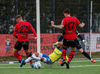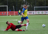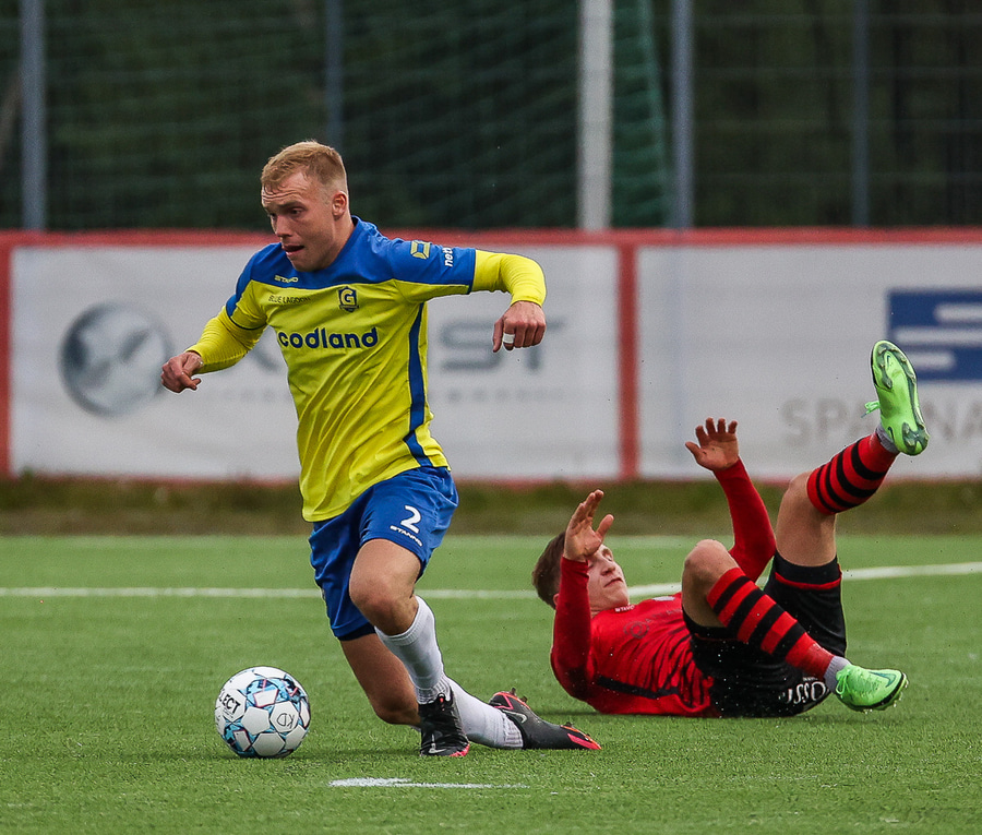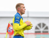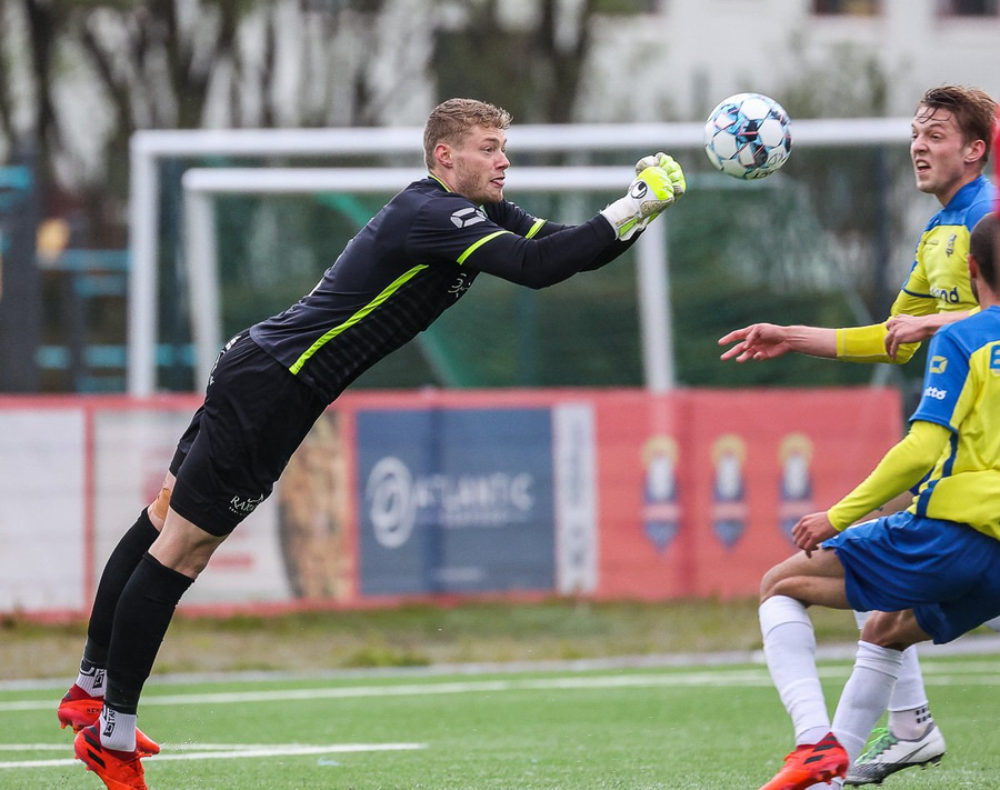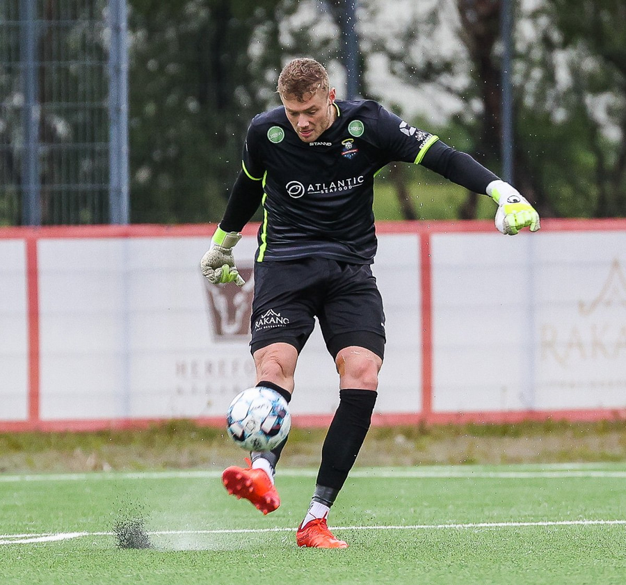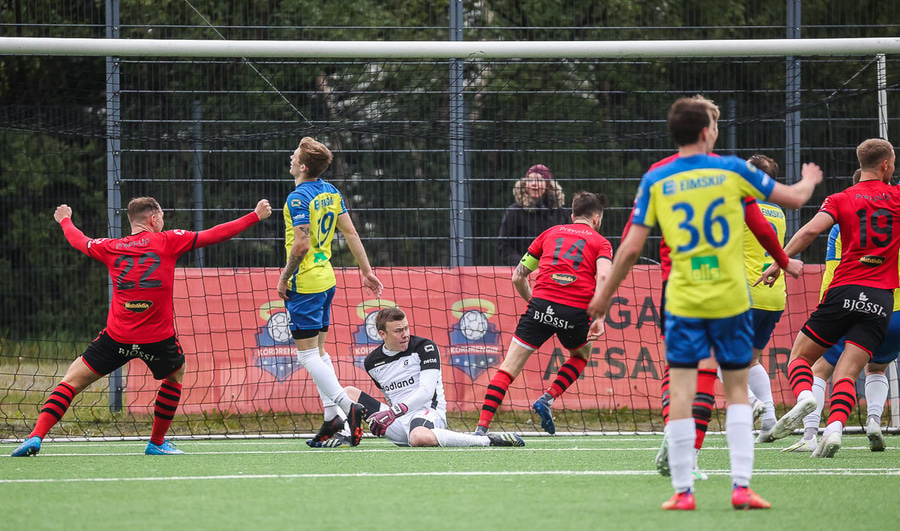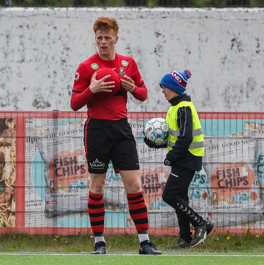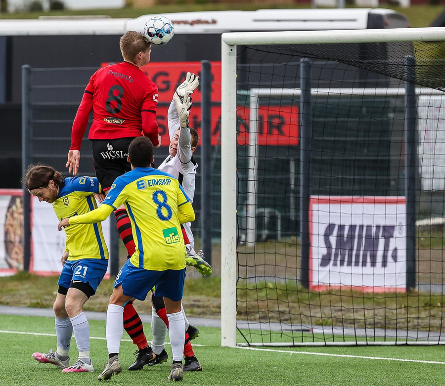 Löng aukaspyrna og boltinn fer á Simpson sem tekur skotið. Aron ver en heldur ekki boltanum og Albert Brynjar hirðir frákastið.
