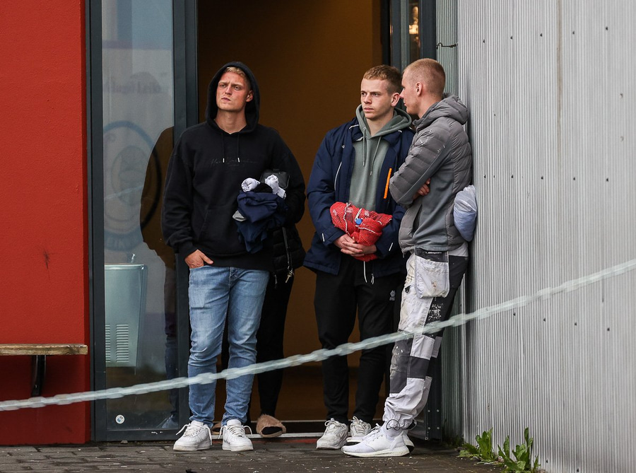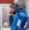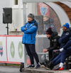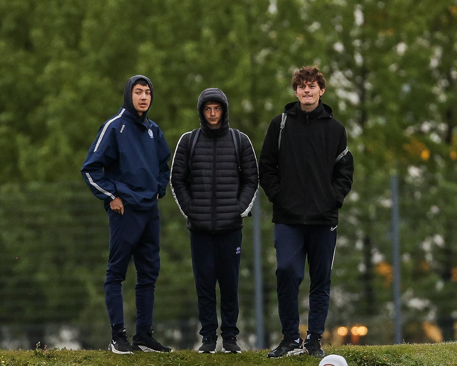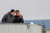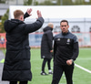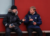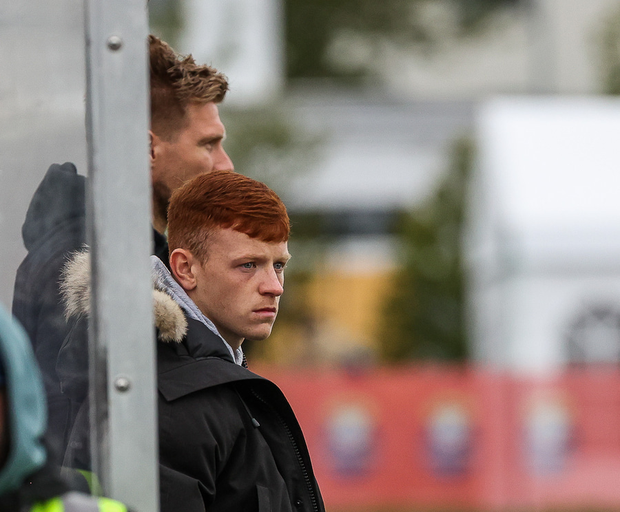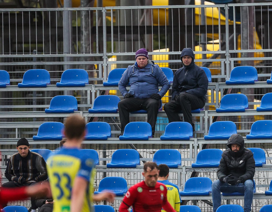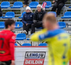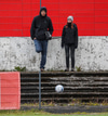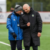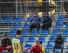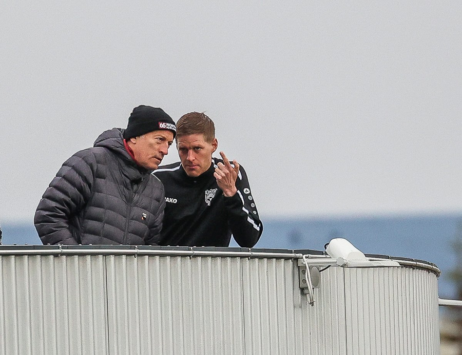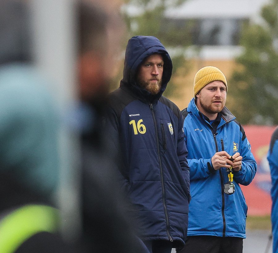 Alvöru flóra áhorfenda hérna. Valtýr Björn og Tómas Þór fóru yfir málin yfir kaffi í hálfleiknum. Davíð Snorri U21 landsliðsþjálfari er hér og einnig Gary Martin.