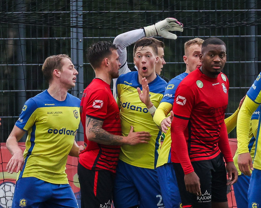 Vá! Kórdrengir í svakalegu færi en boltinn lekur framhjá! Grindvíkingar stálheppnir.