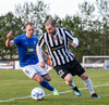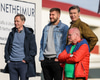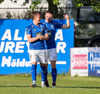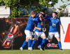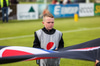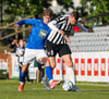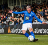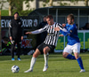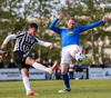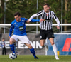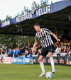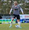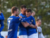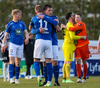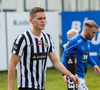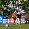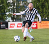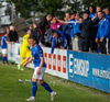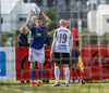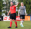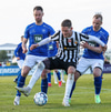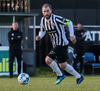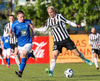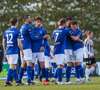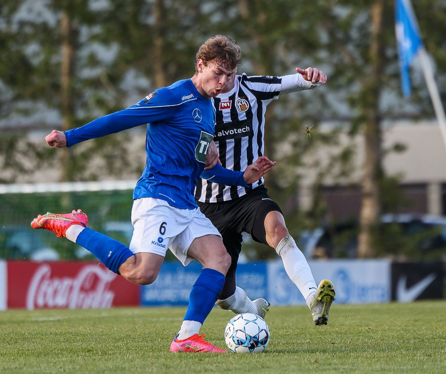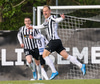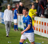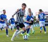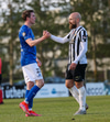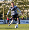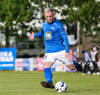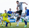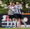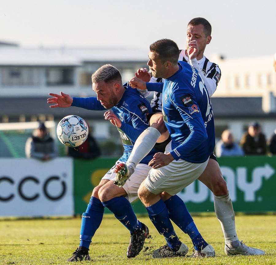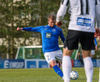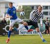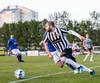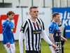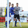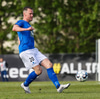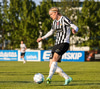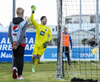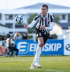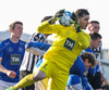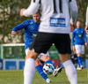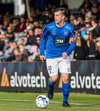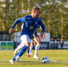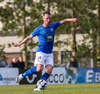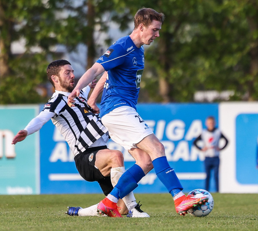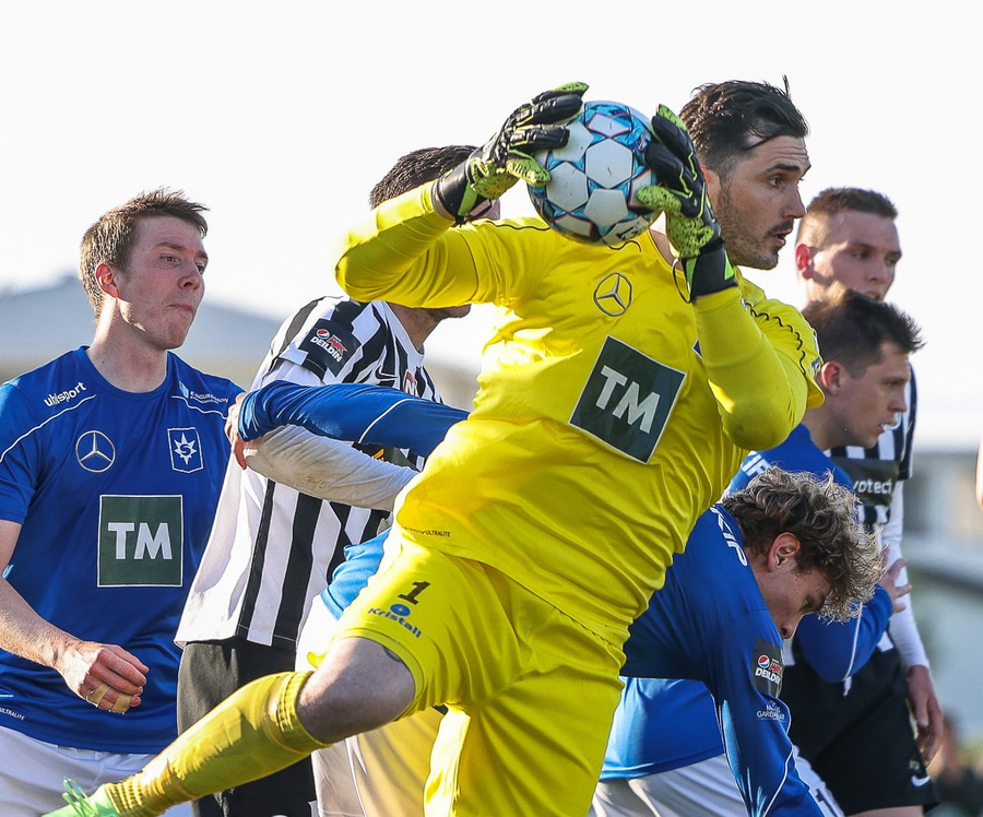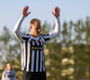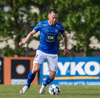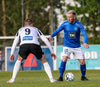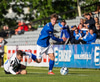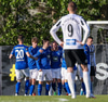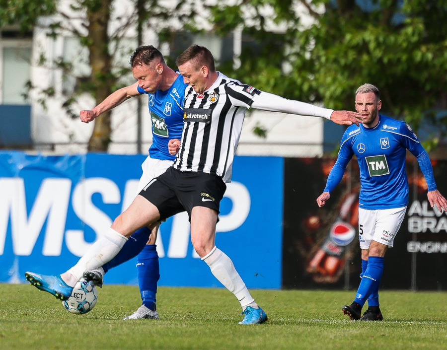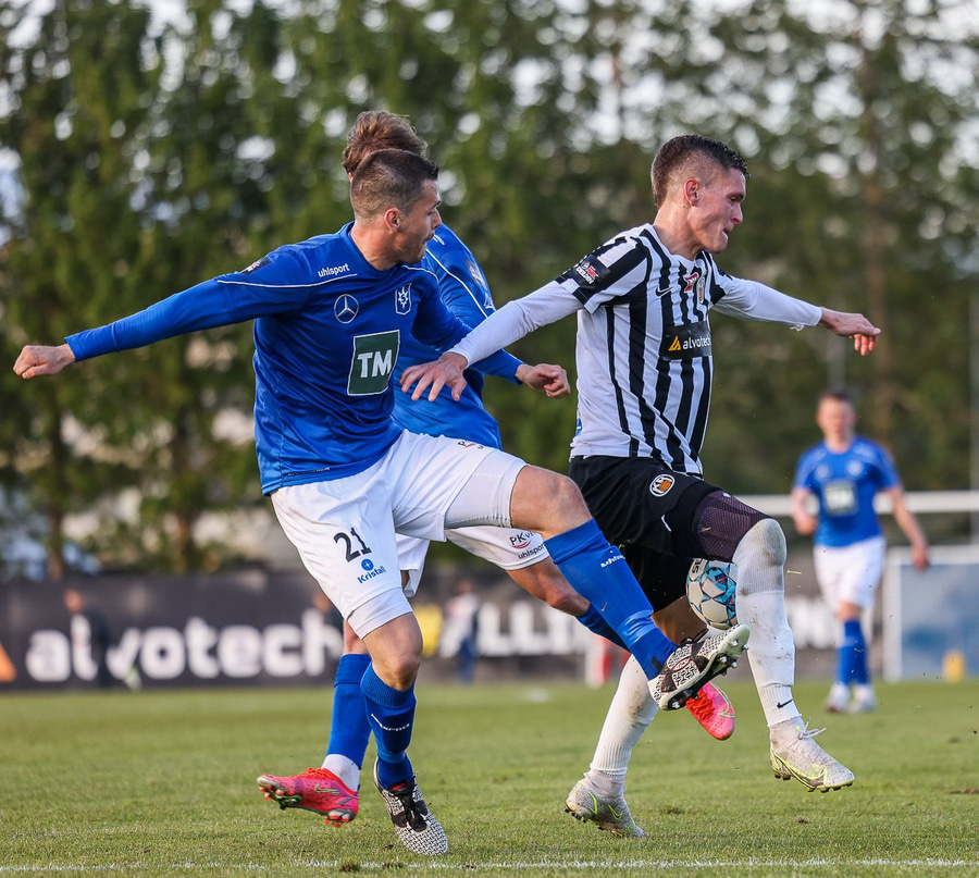 Kennie lætur vaða en Björn rennir sér fyrir og kemst fyrir skotið og Haraldur hirðir svo upp boltann.