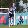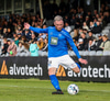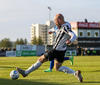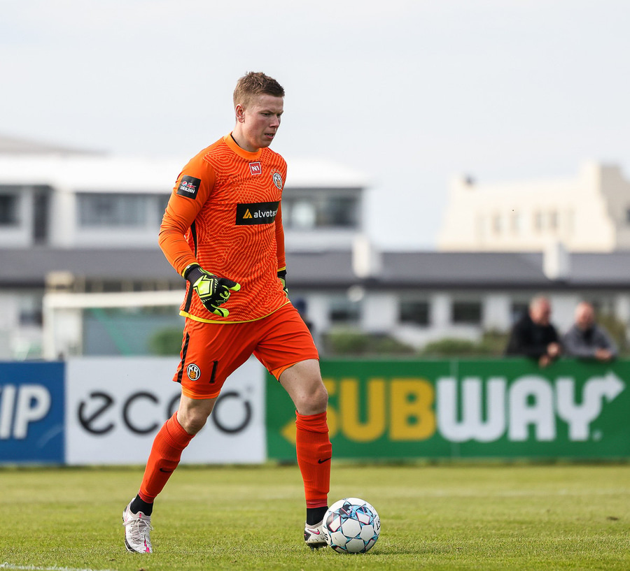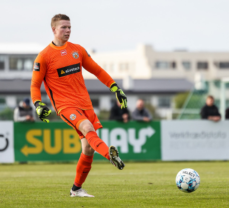 Eggert Aron með skot af stuttu færi, úr þröngu færi vinstra megin við markið og reynir að skrúfa í fjærhornið með hægri en skotið framhjá.
