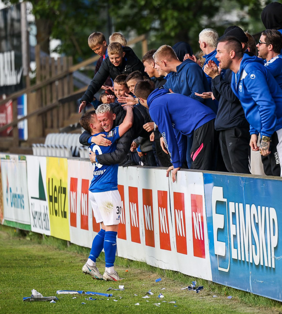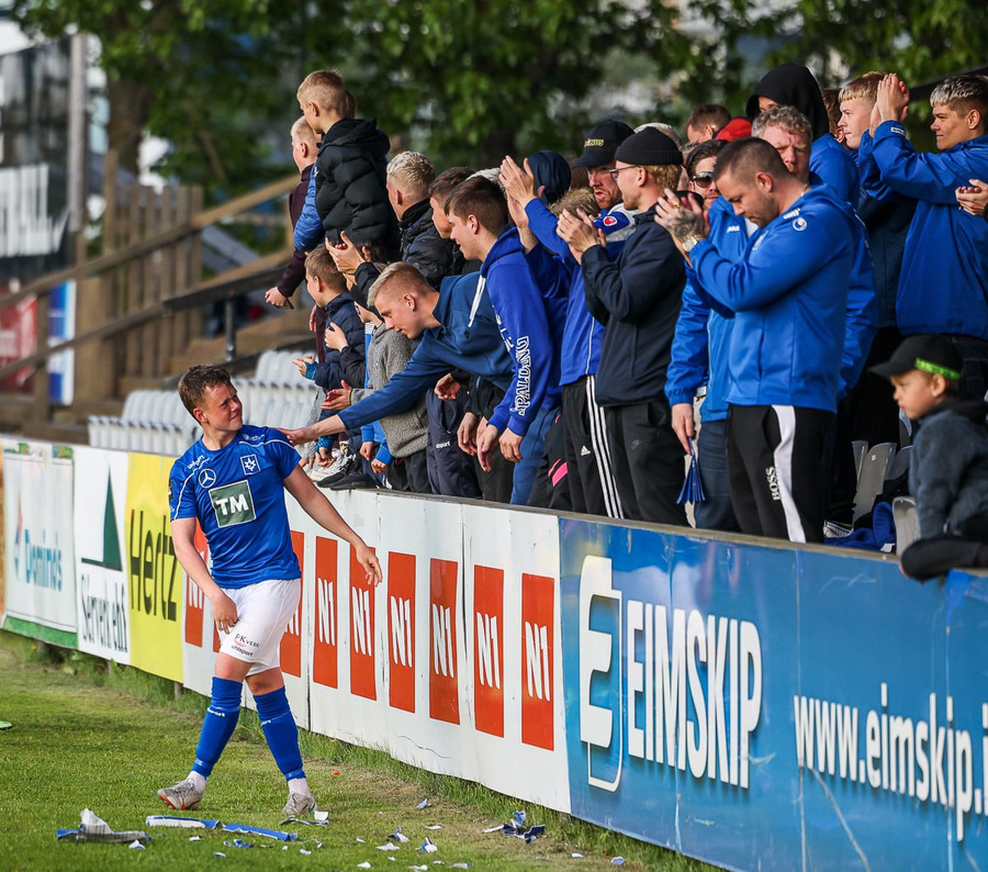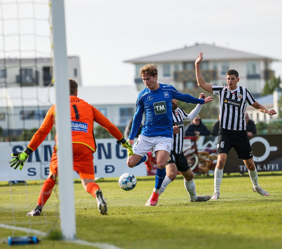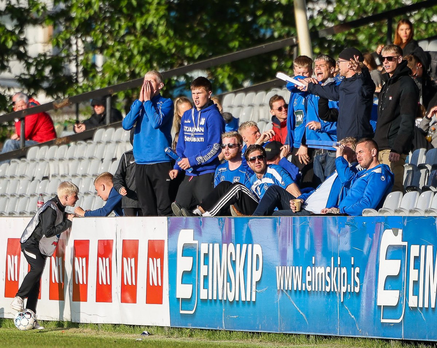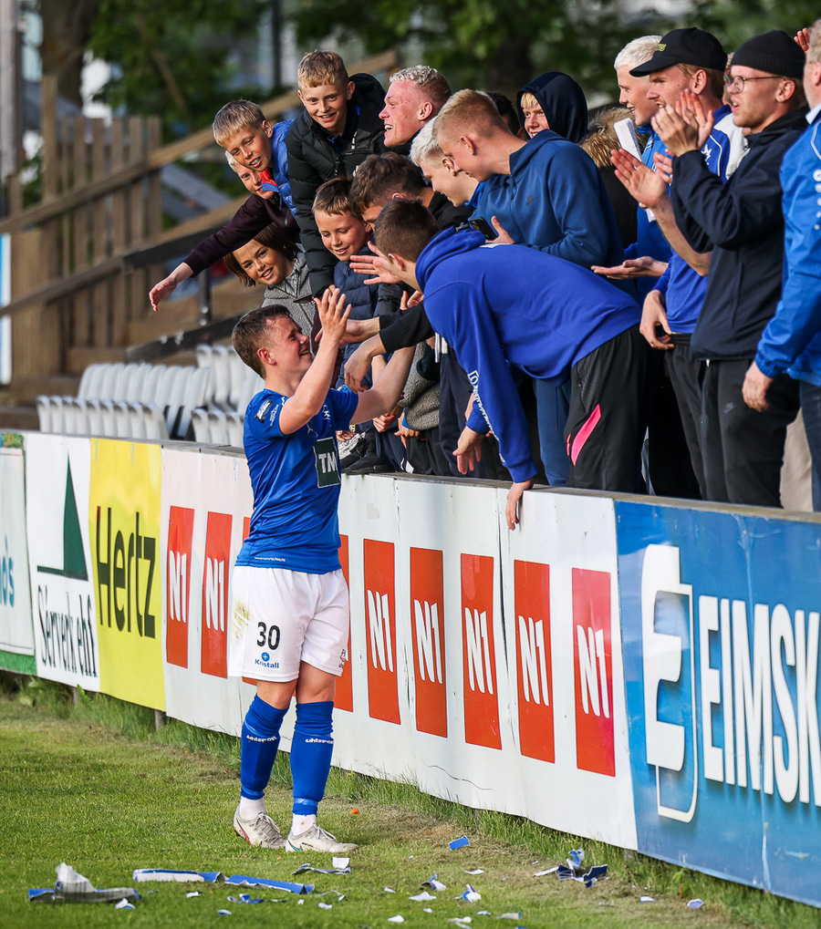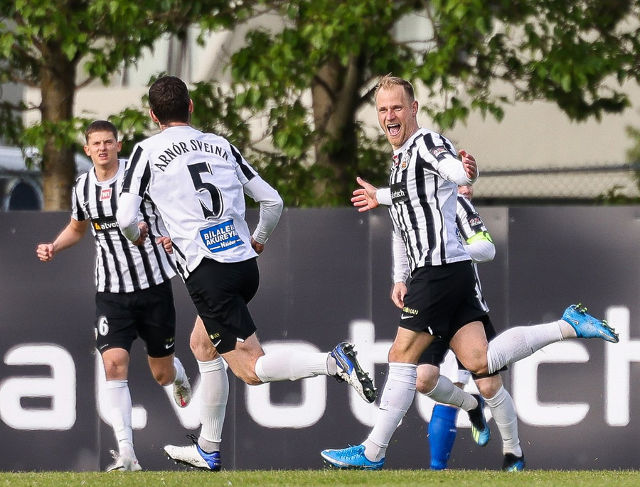 Áhorfendur náðu að dæma Atla rangstæðan þarna, öskruðu þessa rangstöðu í gegn. Virkaði tæpt.