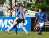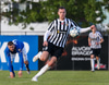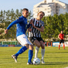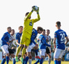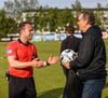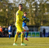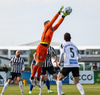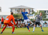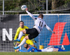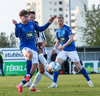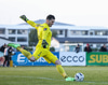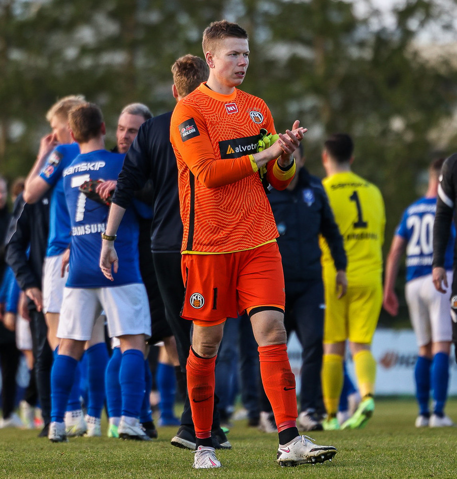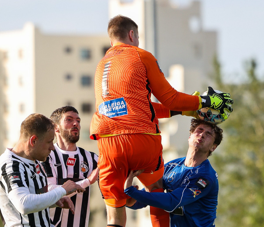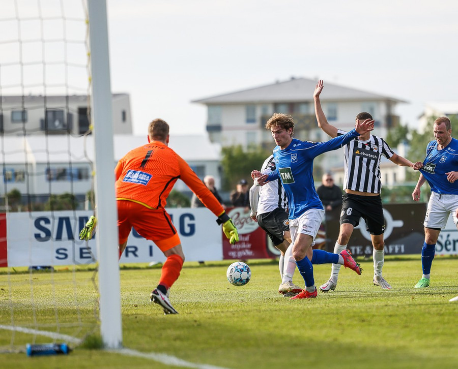 Magnus kemur boltanum á Emil en Beitir er snöggur niður og slær boltann í horn.