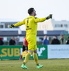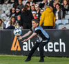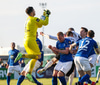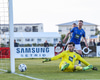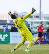 Ekki var þetta merkileg spyrna frá Chopart. Haraldur grípur.