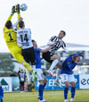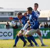 Heiðar með fyrirgjöf sem Kennie nær að koma í burtu.