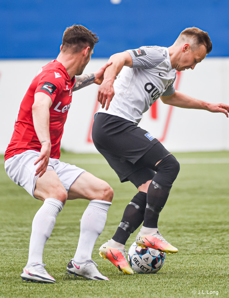 Jónatan Ingi og Birkir í kapphlaupi, Birkir brýtur af sér í baráttunni og fær gult.