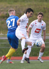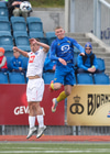 Axel fer illa með Bjarna Þór úti vinstr megin, flottur klobbi en missir boltann svo útaf. Fín tilraun