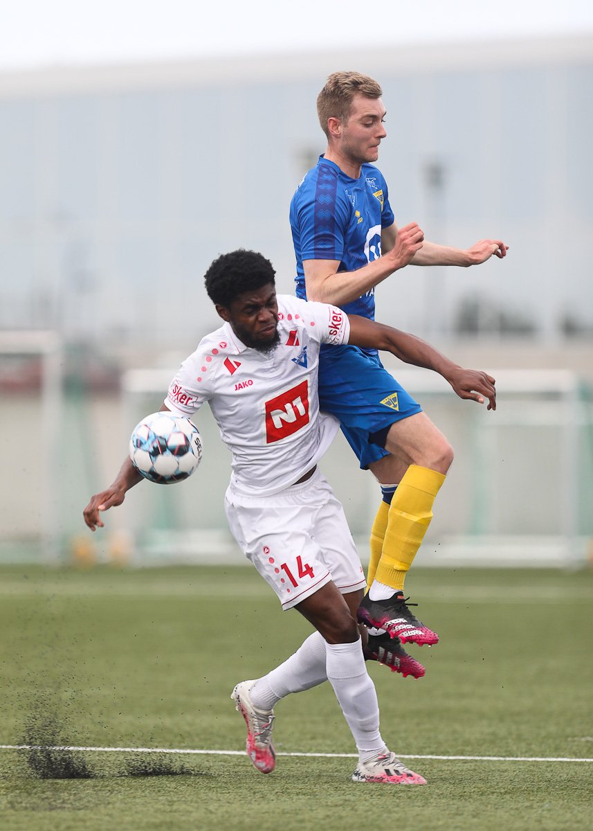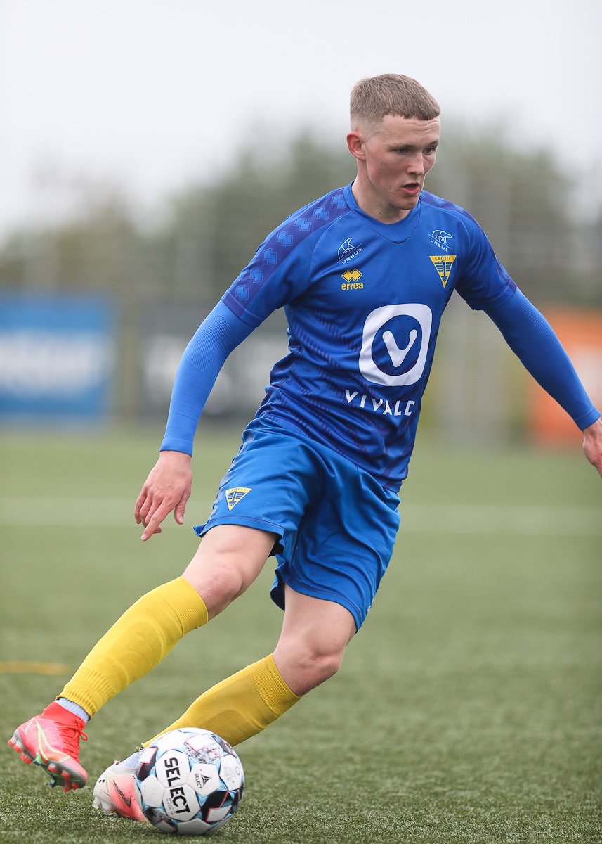 Þarna munaði litlu að Bjartur kæmist í gegn, langur bolti í gegn en hann nær ekki að taka hann með sér. Fínt spila þarna hjá gestunum