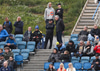 Fylgir eftir við hliðarlínu, Ólsarar ósáttir í stúkunni. Brynjar Kristmunds þjálfari vill útskýringar frá aðstoðardómaranum. "Óþarfa brot" segir Óli