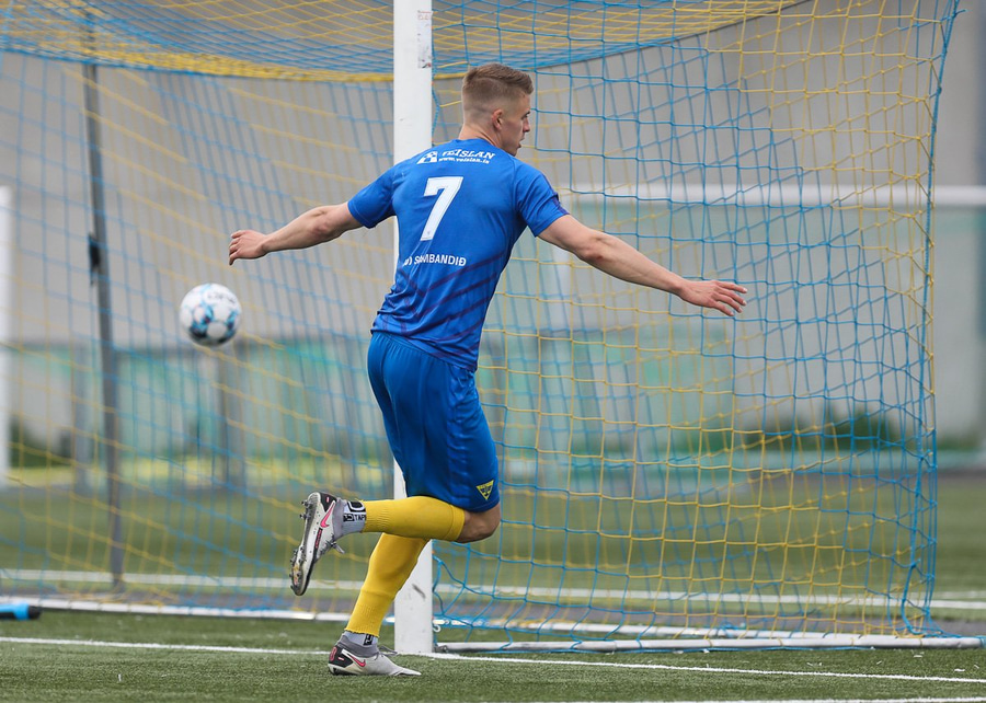 Góð hornspyrna frá Kristófer, Pétur stangar hann í netið. Voru búnir að hóta þessu í hornum sínum