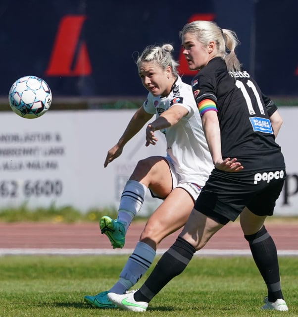 Klafs inná vítateig Þór/KA eftir langt innkast en þær ná að koma boltanum í burtu.