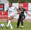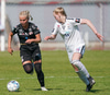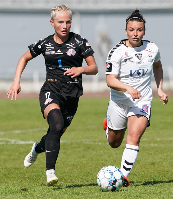 Góð hugmynd hjá Viktorjiu, hún reyndi stungusendingu en aðeins og fast og innarlega, Harpa nær boltanum.