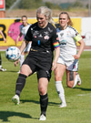 Olga fer inn á teiginn og sendir boltann fyrir, boltinn dettur fyrir fætur Kallmaier sem leggur boltann framhjá Hörpu og í netið.