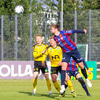 Aron Kristófer fær langan bolta út til vinstri og reynir að koma boltanum fyrir en boltinn beint á hendurnar á Smit.