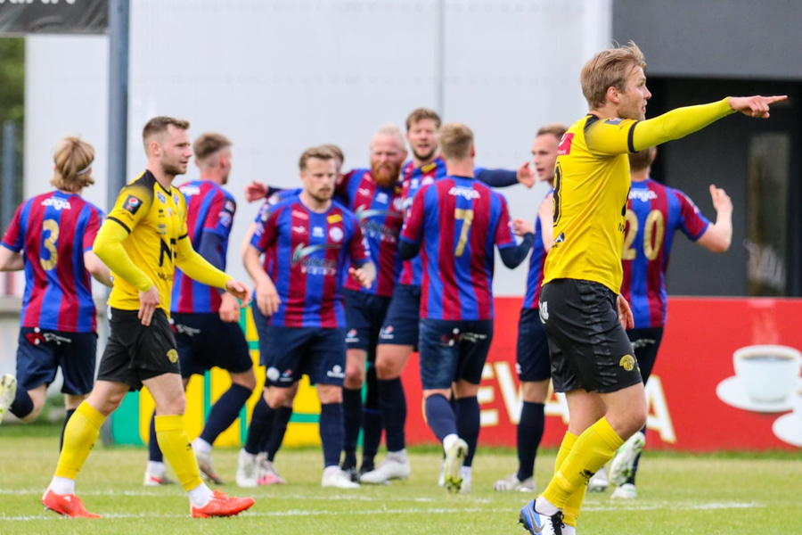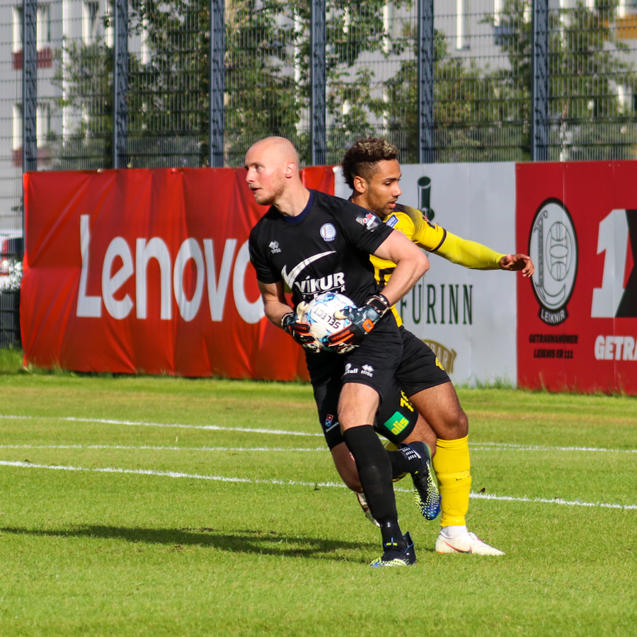 Danni Finns og Máni Austmann með geggjað spil sín á milli og Máni rennir boltanum út í teiginn þar sem Berger mætir á ferðinni og lætur vaða á markið en boltinn rétt yfir.