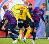 Emil Berger tekur spyrnuna inn á teiginn en Árni kýlir boltann í burtu.