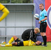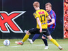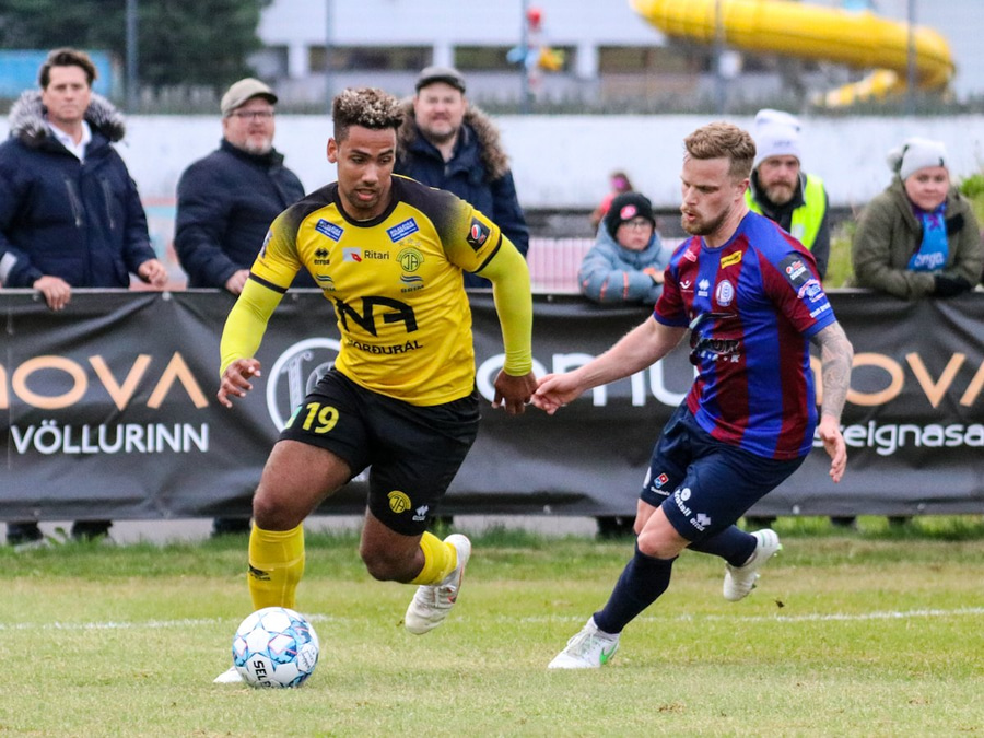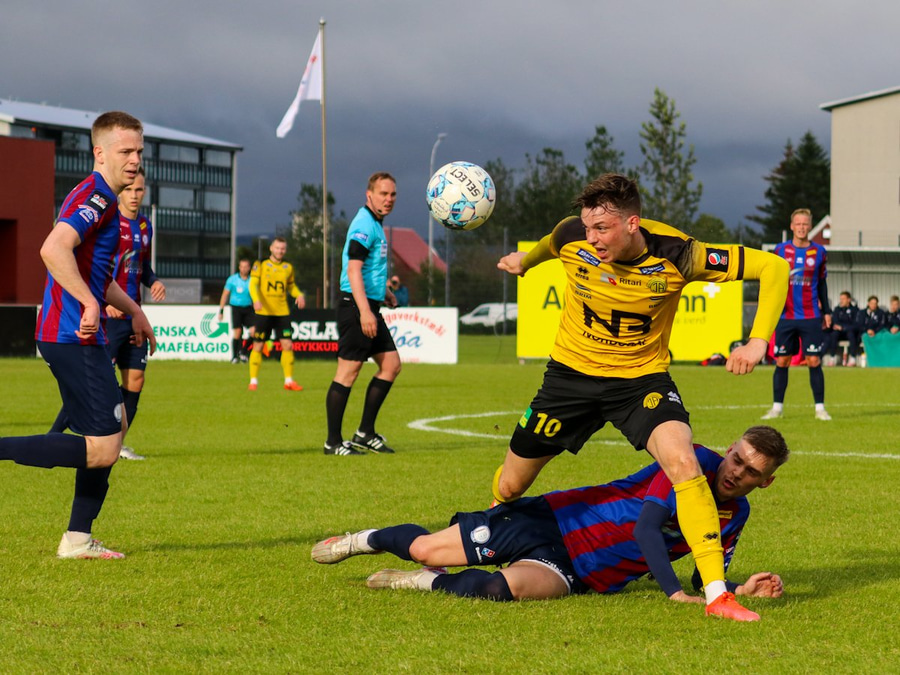 Loftur Páll finnur Mána Austmann út til hægri og Máni kemur með hann fyrir með fram grasinu í fætur Sævars sem reynir að setja hann í fyrsta framhjá Árna en boltinn ratar ekki á markið!