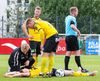 Aron Kristófer togar Mána Austmann niður sem var á leiðinni upp vænginn og Leiknismenn fá aukaspyrnu úti á væng.