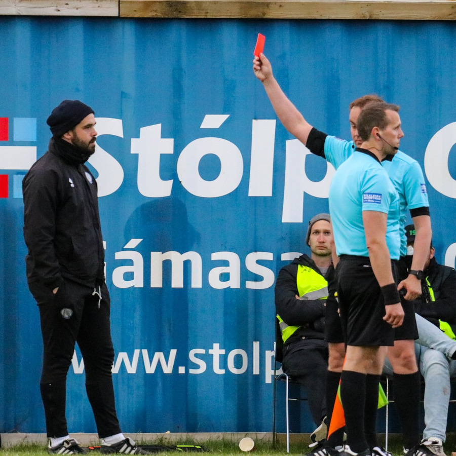 Rautt spjald: Hlynur Helgi Arngrímsson (Leiknir R.)