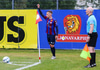 Liðin eru að ljúka upphitun og halda til búningsherbegja og gera sig klár í upphafsflautið.