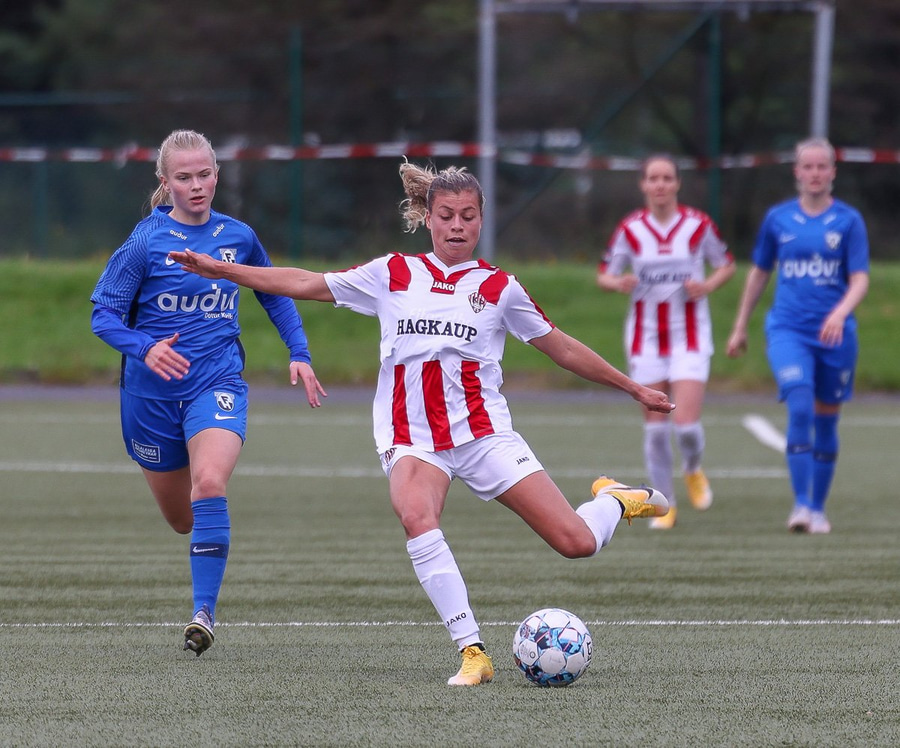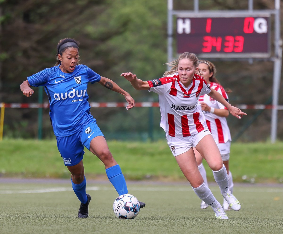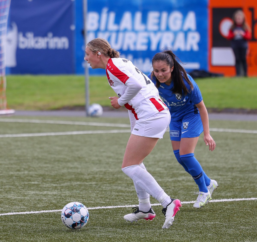 Rannveigu er fyrirmunað að skora. Setur boltann hér rétt fram hjá úr þröngu færi.