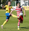 Ásgeir Marteinsson nálægt því að sleppa í gegn en nær ekki að koma boltanum fyrir sig og Dusan mætir á svæðið til að koma boltanum í burtu.