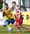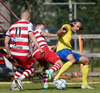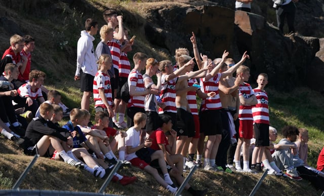 Hallgrímur Mar með lúmskt skot rétt framhjá markinu. Þessi leit sakleysislega út en Arnar Freyr virtist ekki vera alveg viss!