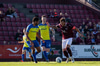 Flott spil sem endar með að Aron setur boltan út í teiginn en Grindvíkingar verjast vel.