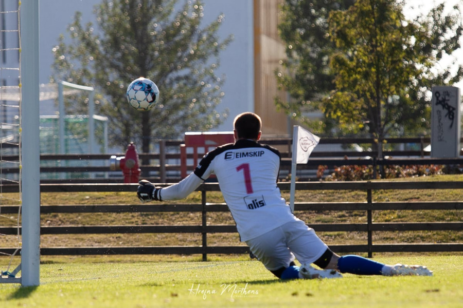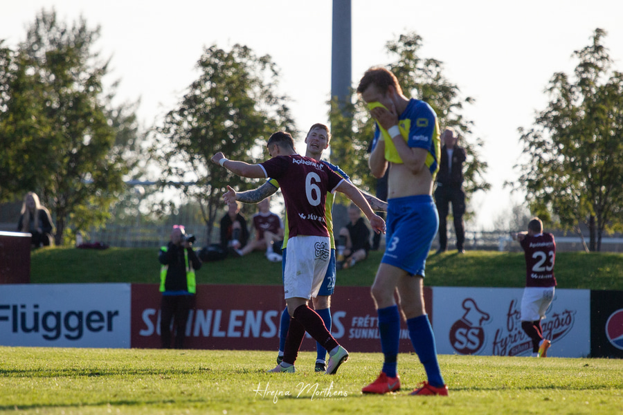 Mikið að gerast og bolinn endar á Þór og smellir honum í skeitinn FRÁBÆRT mark.