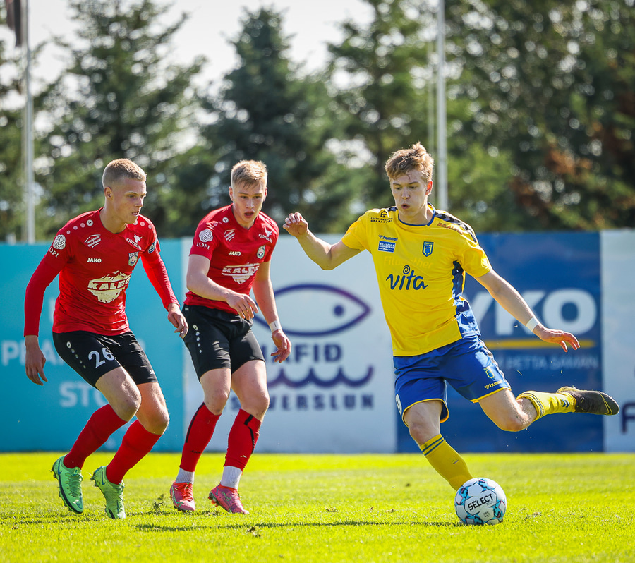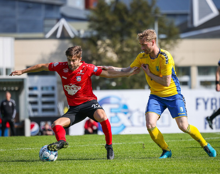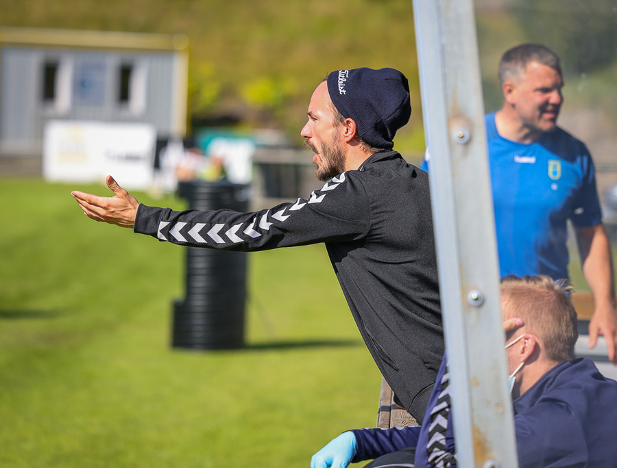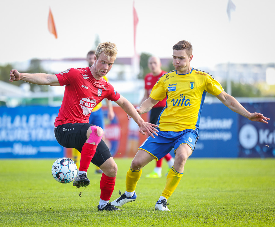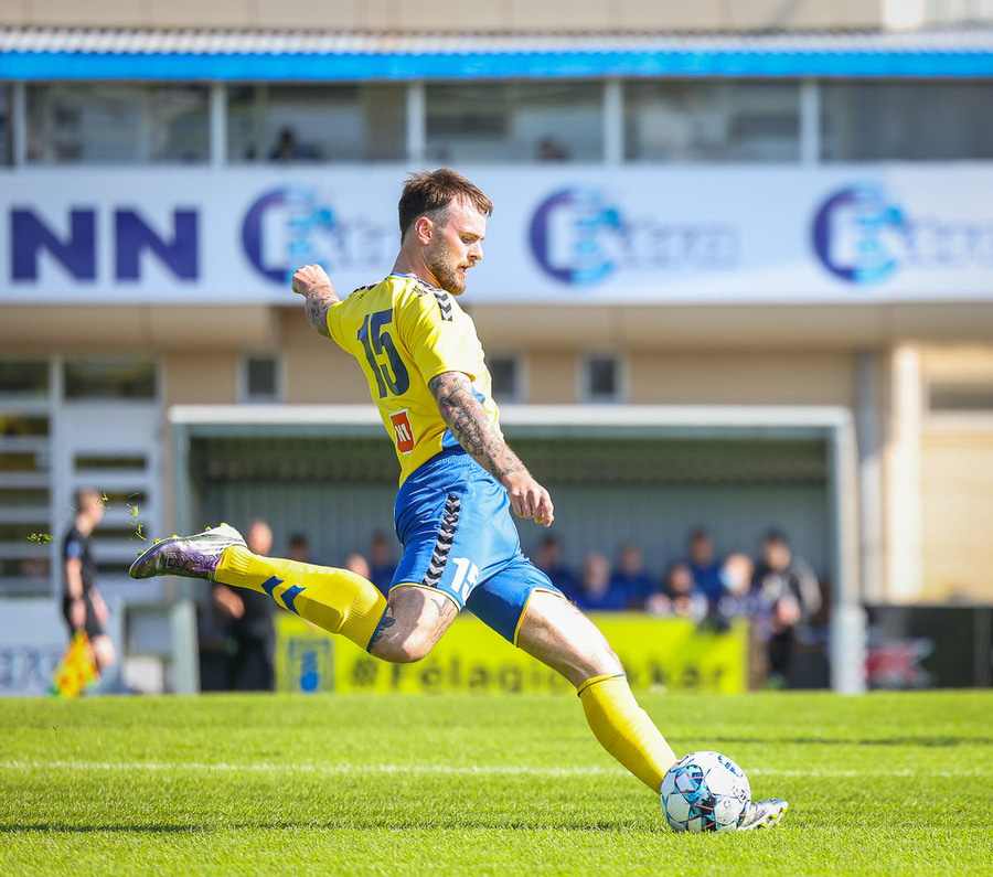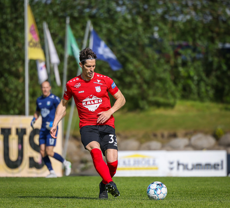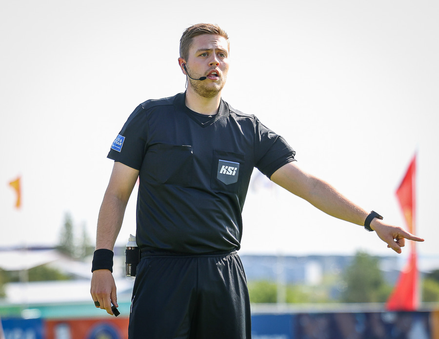 Pedro Vazquez með snögga aukaspyrnu sem Arnór Gauti nær að reka tærnar í á undan Sigurjóni. Boltinn yfir markið en besti séns gestanna til þessa.