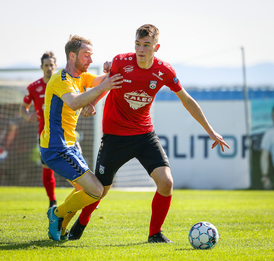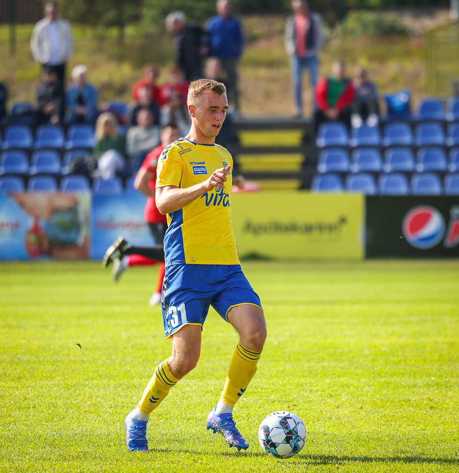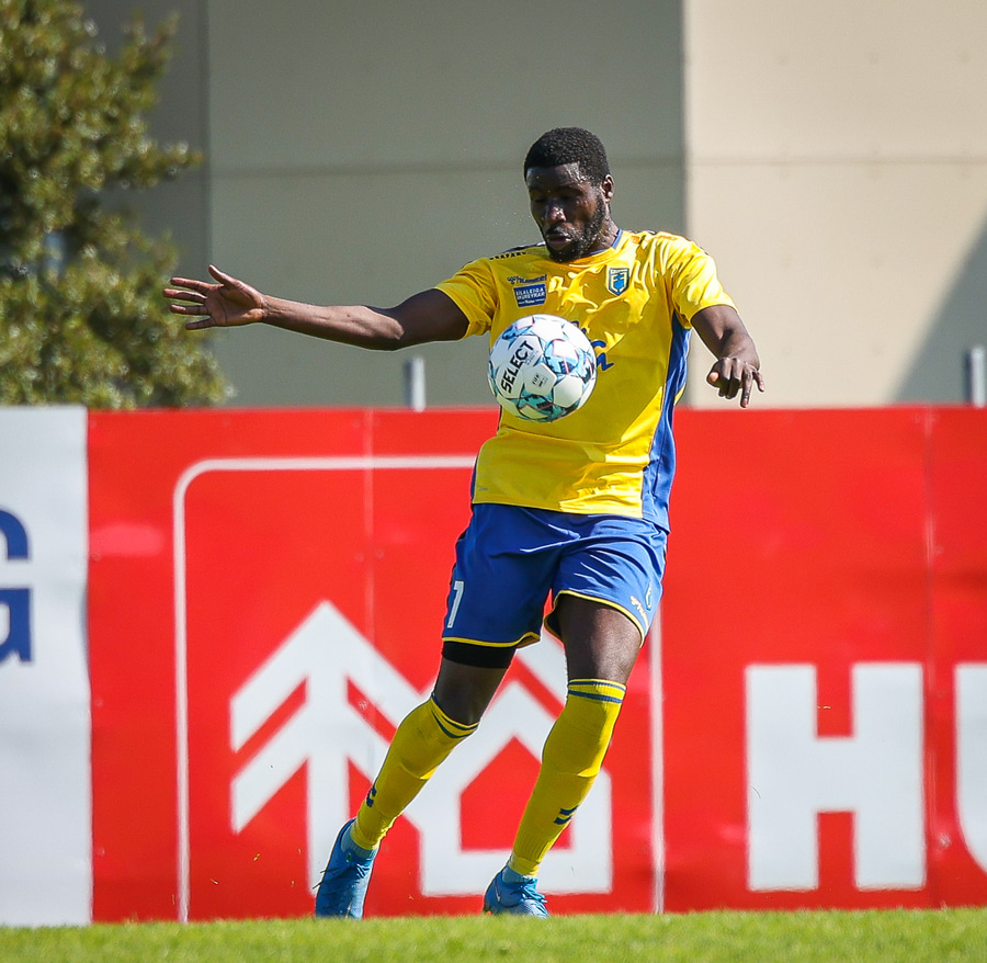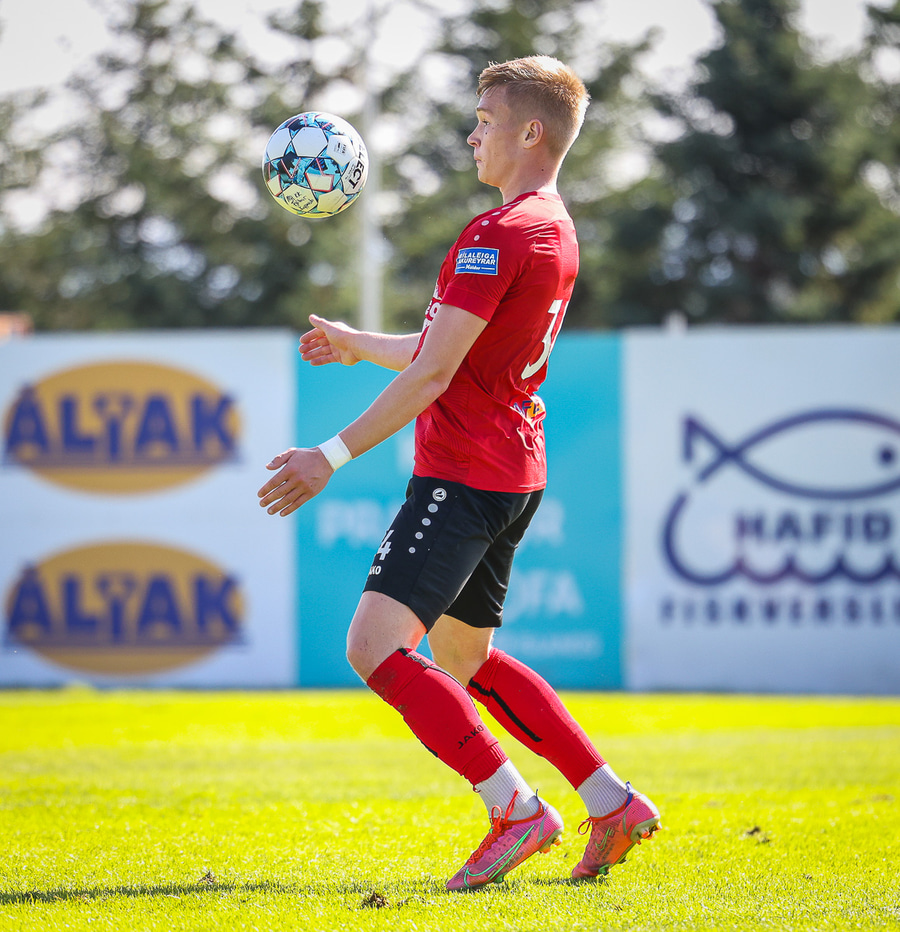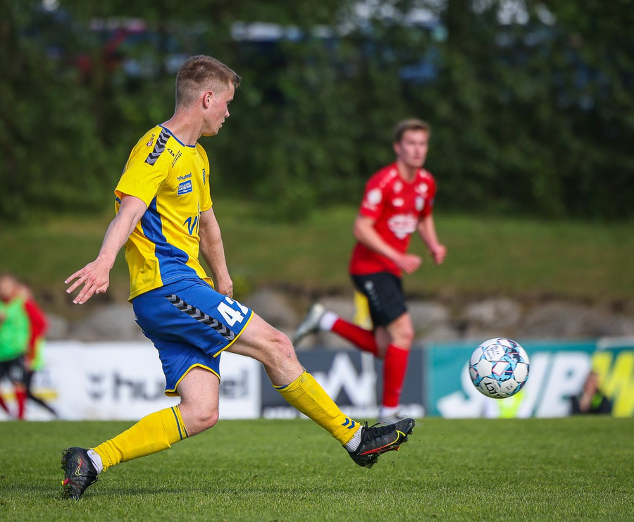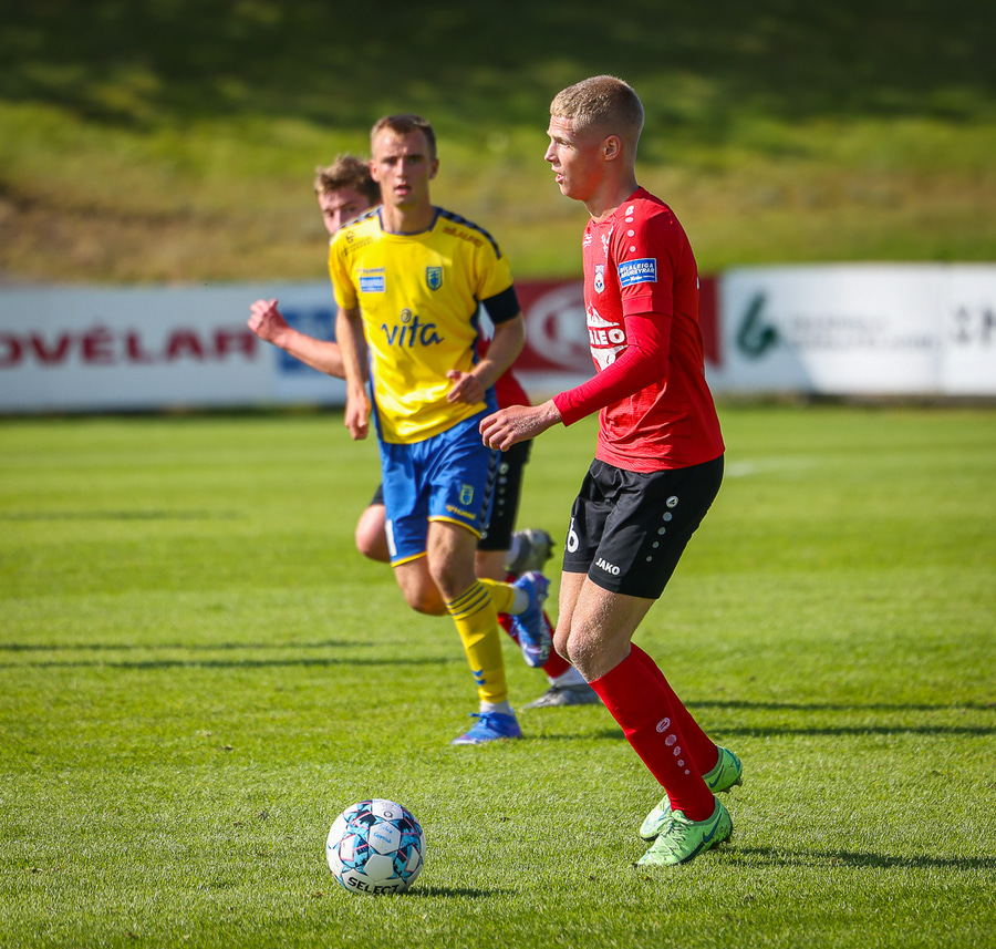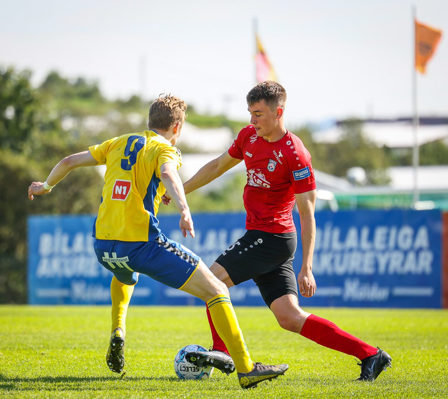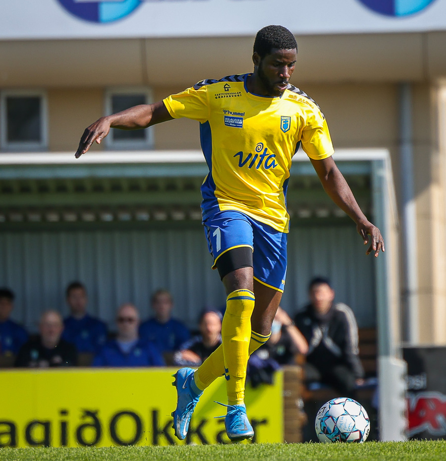 Arnór Breki fer roslega illa með 2 á 1 stöðu er hann reynir að finna Bakare með háum bolta í teignum. Boltinn svífur langt frá Bakare og færið rennur út í sandinn.