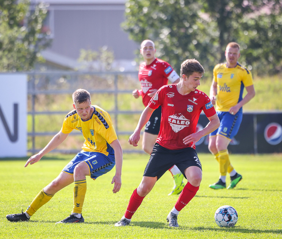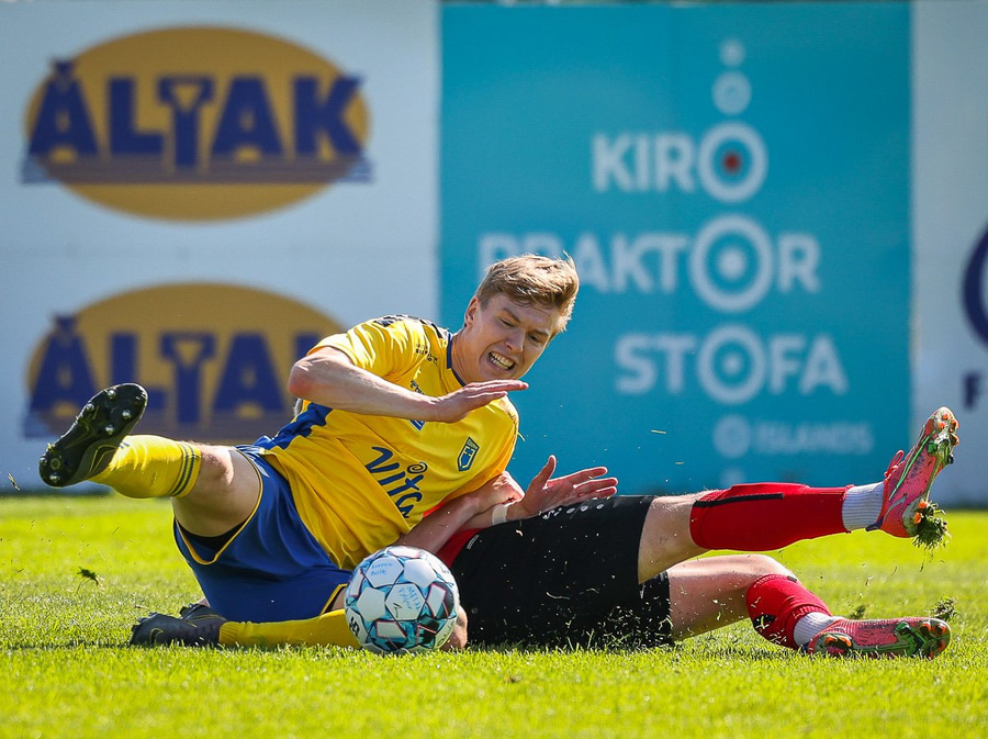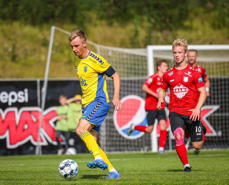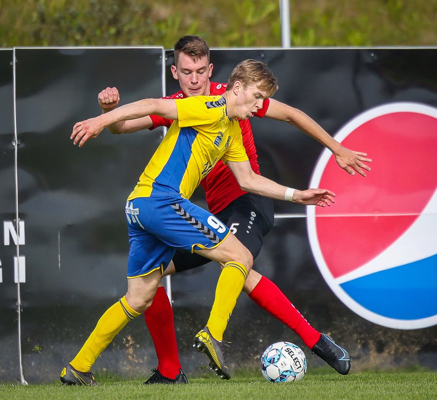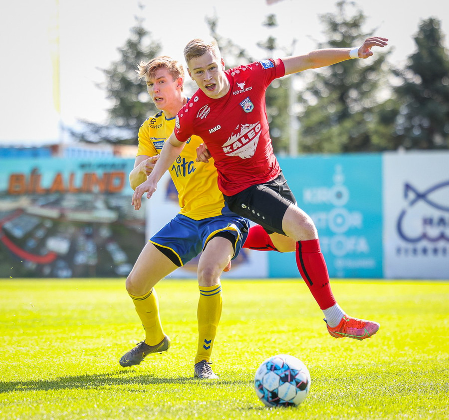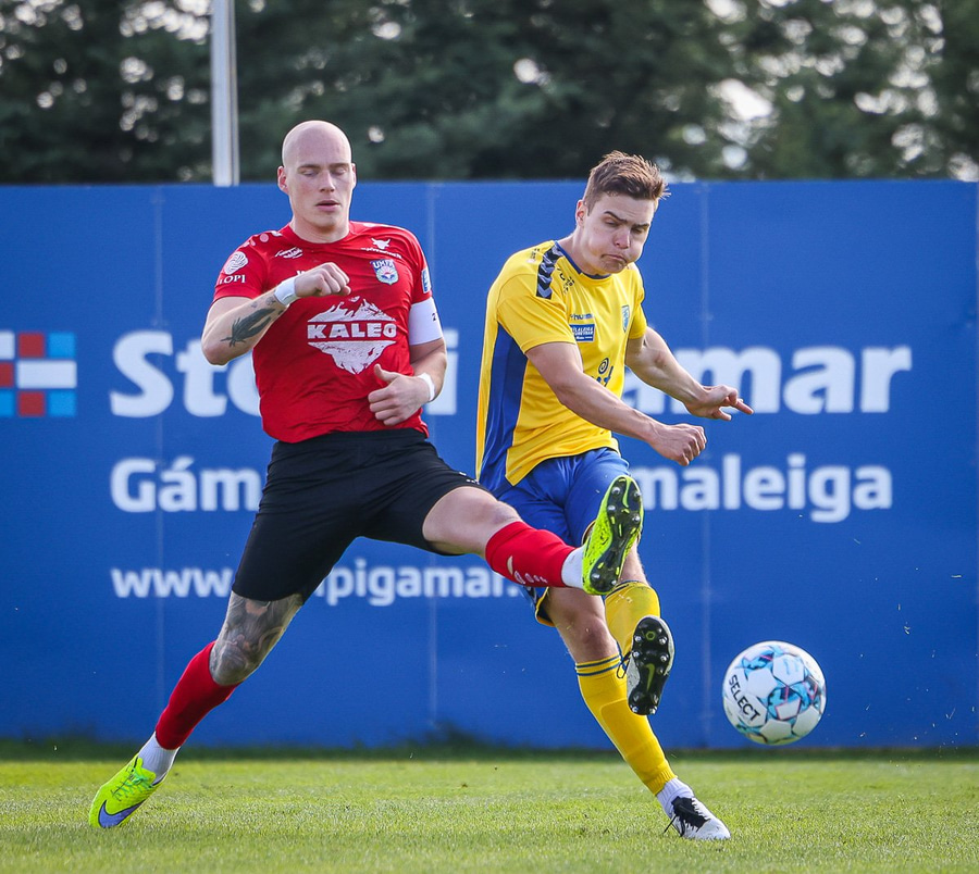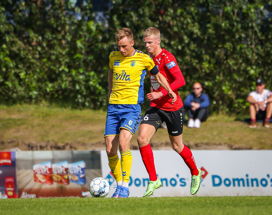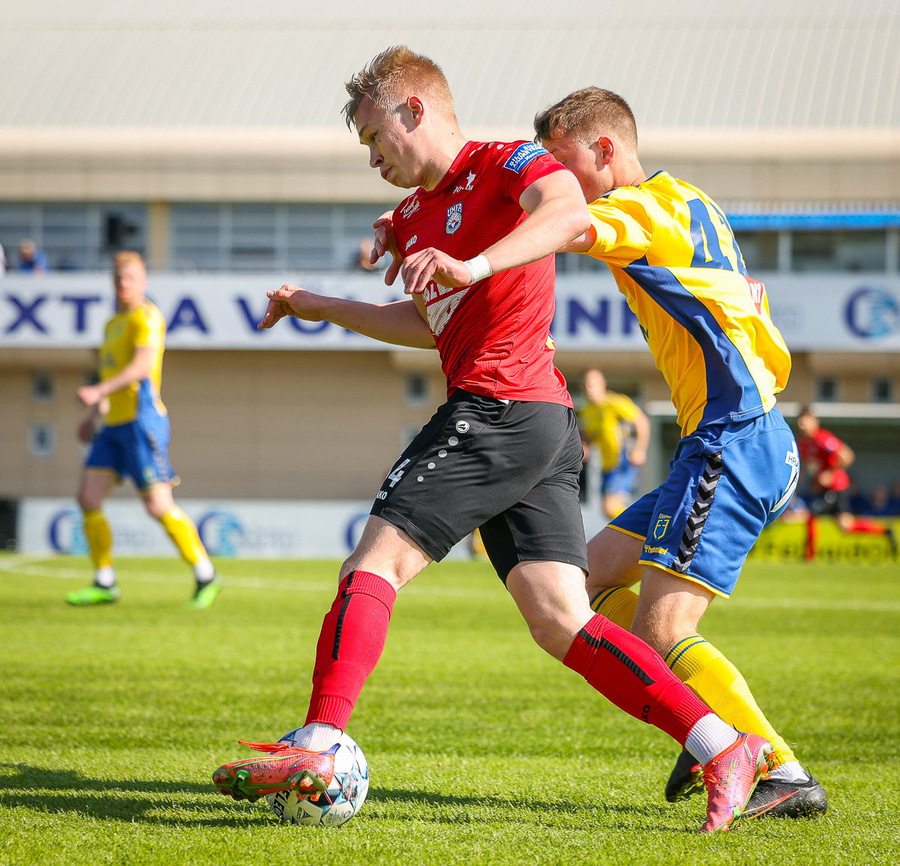 Arnór Breki fer roslega illa með 2 á 1 stöðu er hann reynir að finna Bakare með háum bolta í teignum. Boltinn svífur langt frá Bakare og færið rennur út í sandinn.