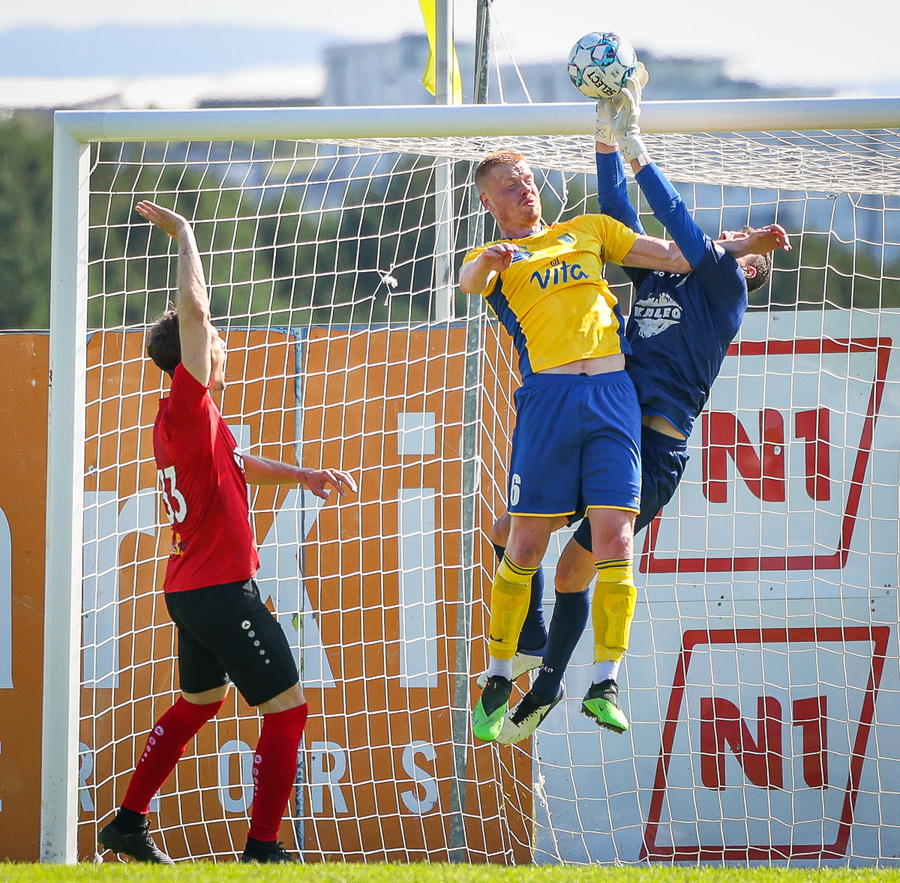 Arnór Gauti með skalla að marki en Sigurjón vel staðsettur og handsamar boltann auðveldlega.
