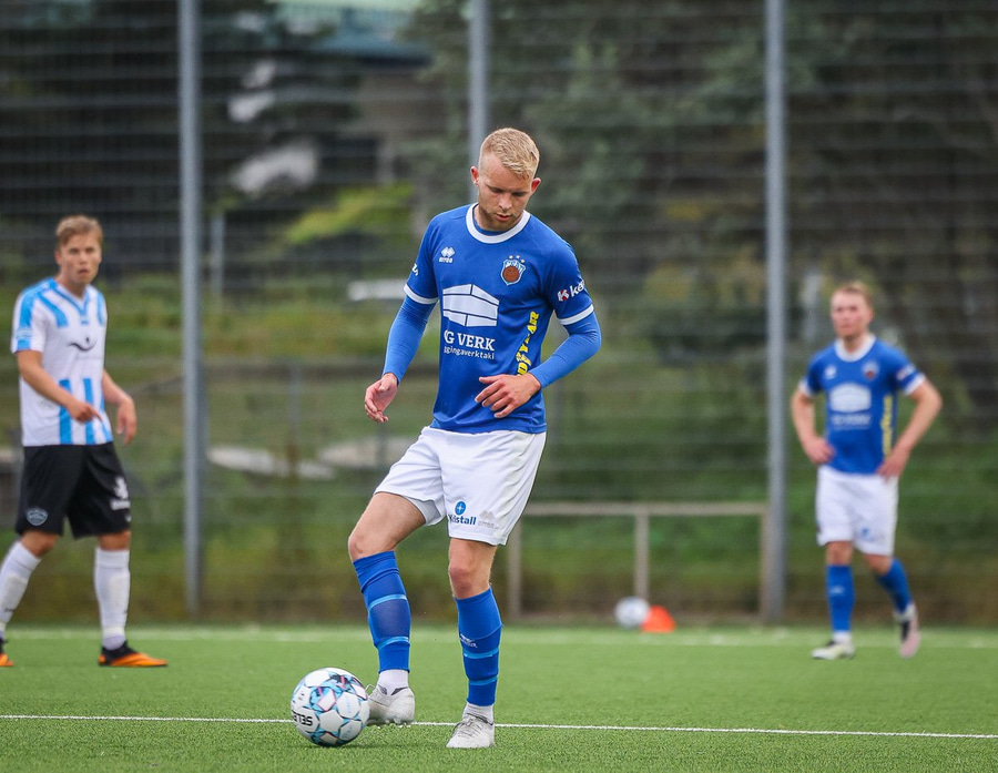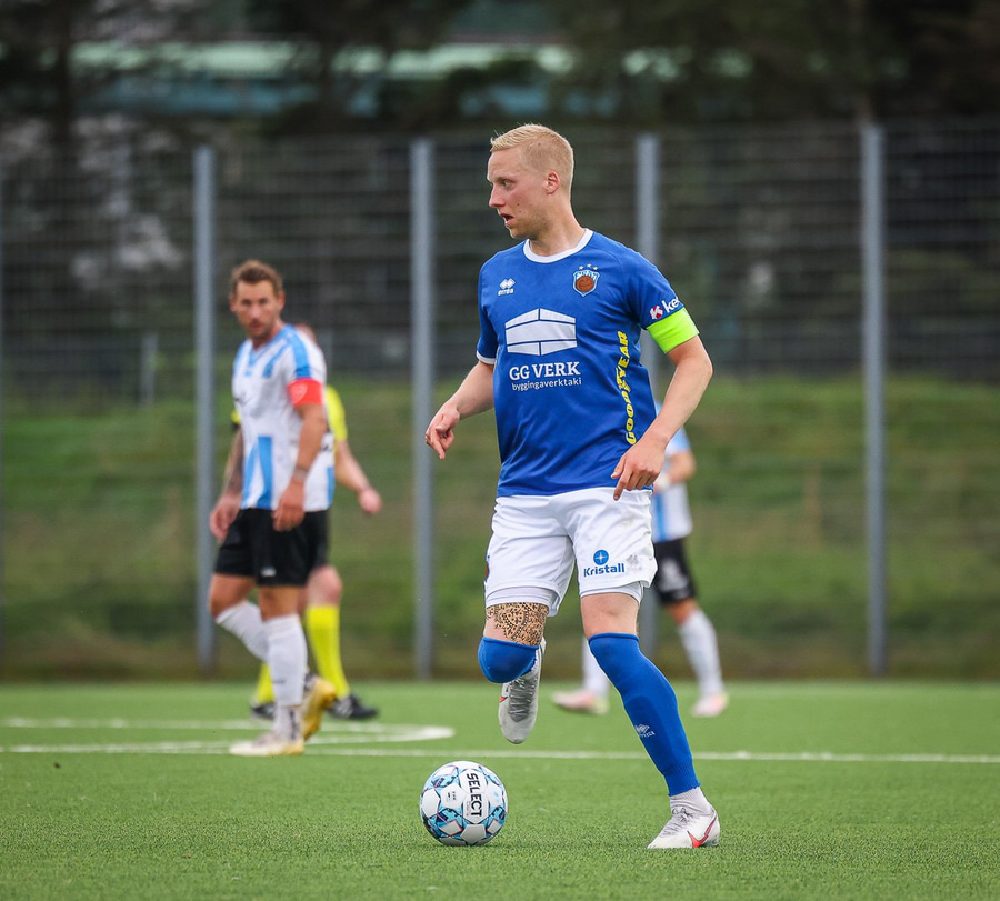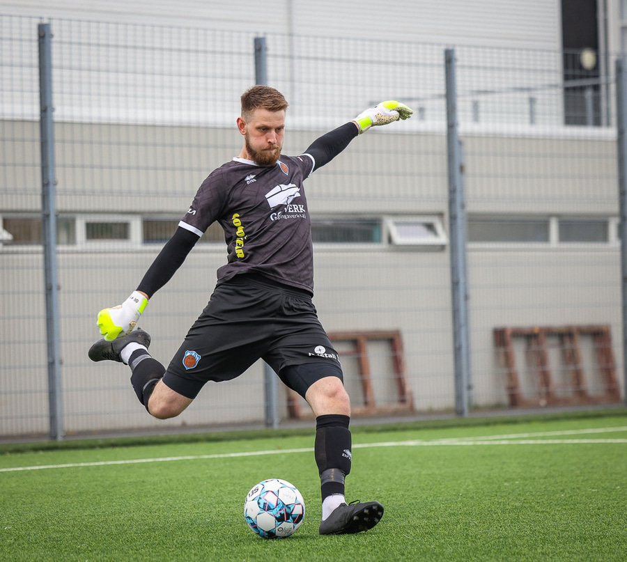Brýtur á Gunnari þegar hann er að taka útspark